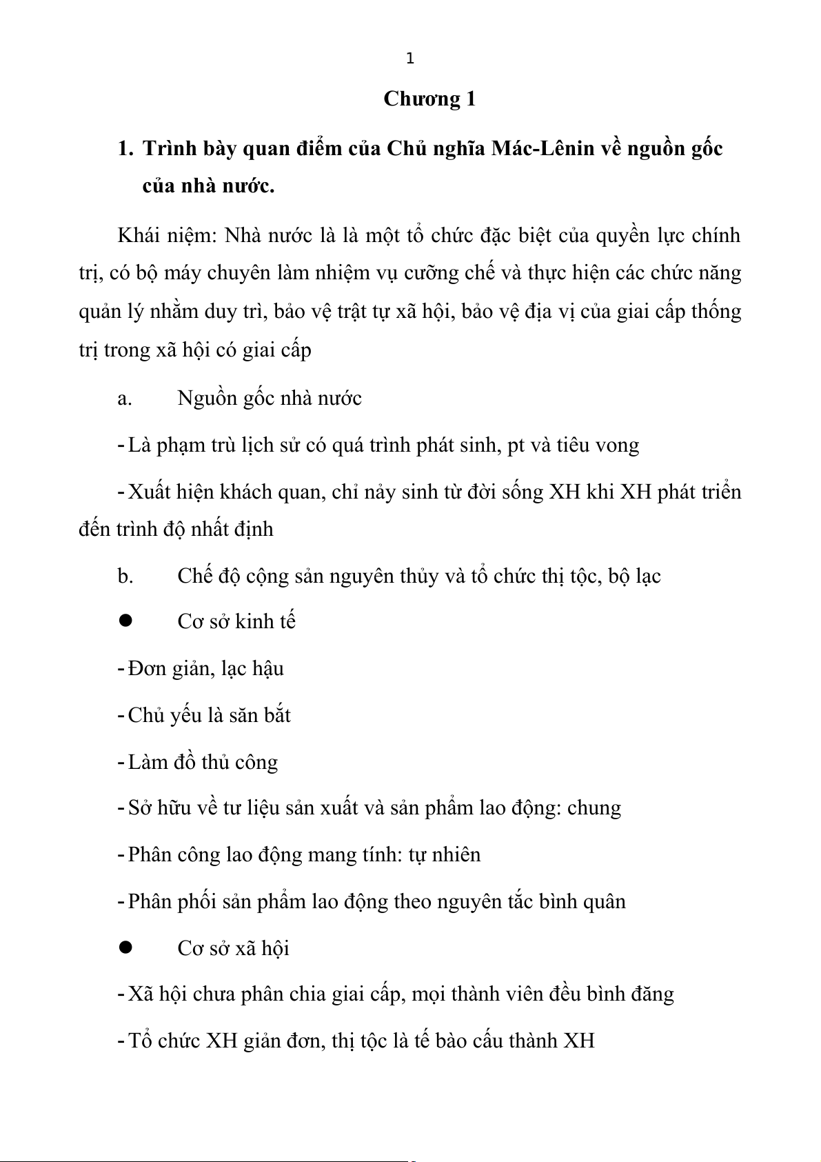 1. Trình bày quan điểm của Chủ nghĩa Mác-Lênin về nguồn gốc của nhà nước.