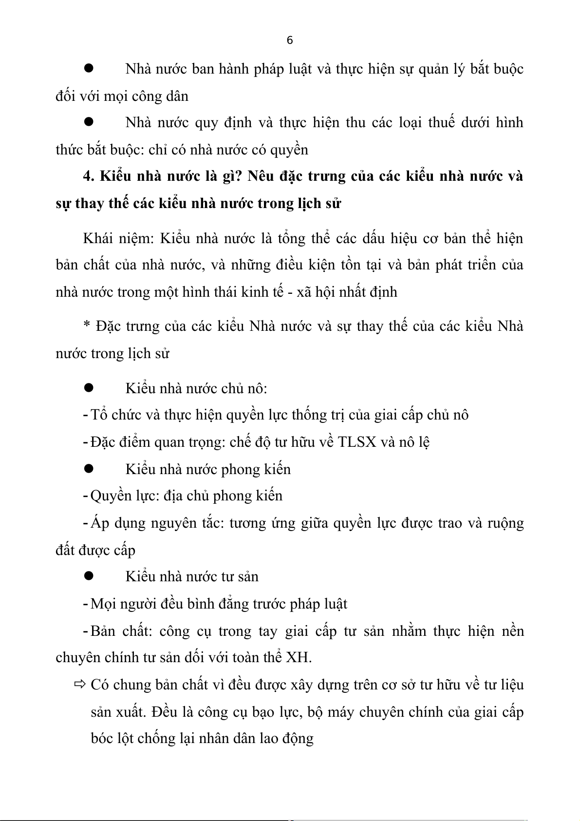 4. Kiểu nhà nước là gì? Nêu đặc trưng của các kiểu nhà nước và