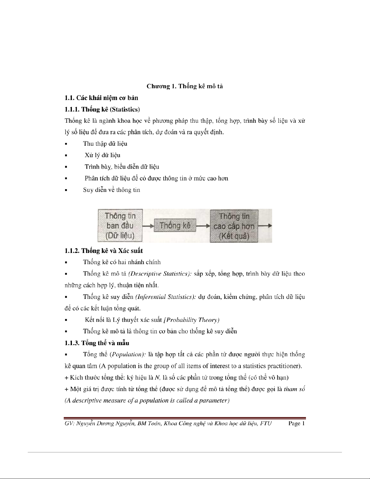 Chương 1: Thống kê Mô Tả - Các Khái Niệm Cơ Bản (XSTK) - Studocu