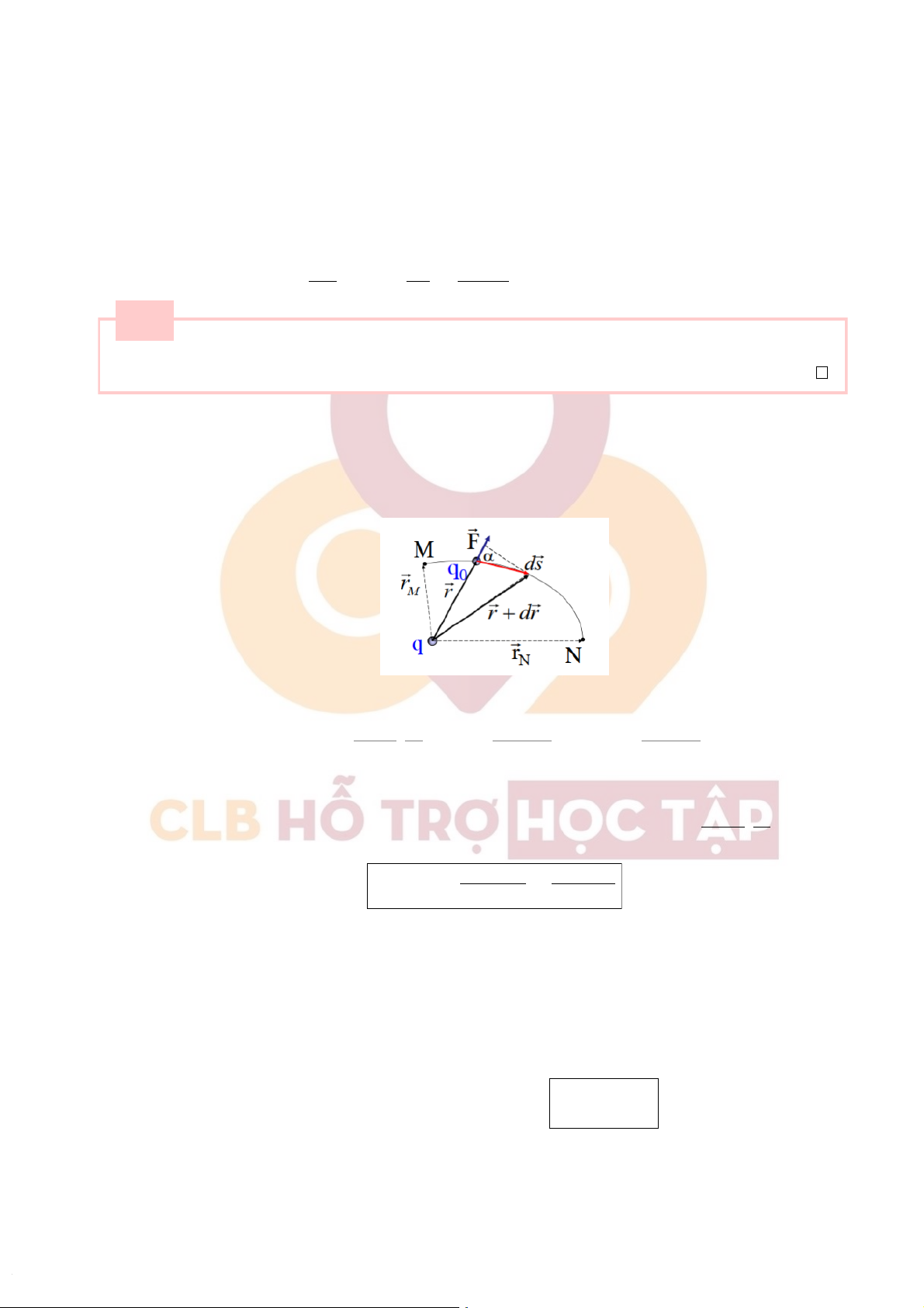 HỗtrợSinhviênBáchKhoa CLBHỗTrợHọcTập ⇒ −dV =q 4πεε0r2.dr . V2 ˆ R2 ˆ q.dr Từđó: −dV = 4πεε0r2 V1 R1 HayV1−V2=q R1−1 4πεε0r2 1 R2
