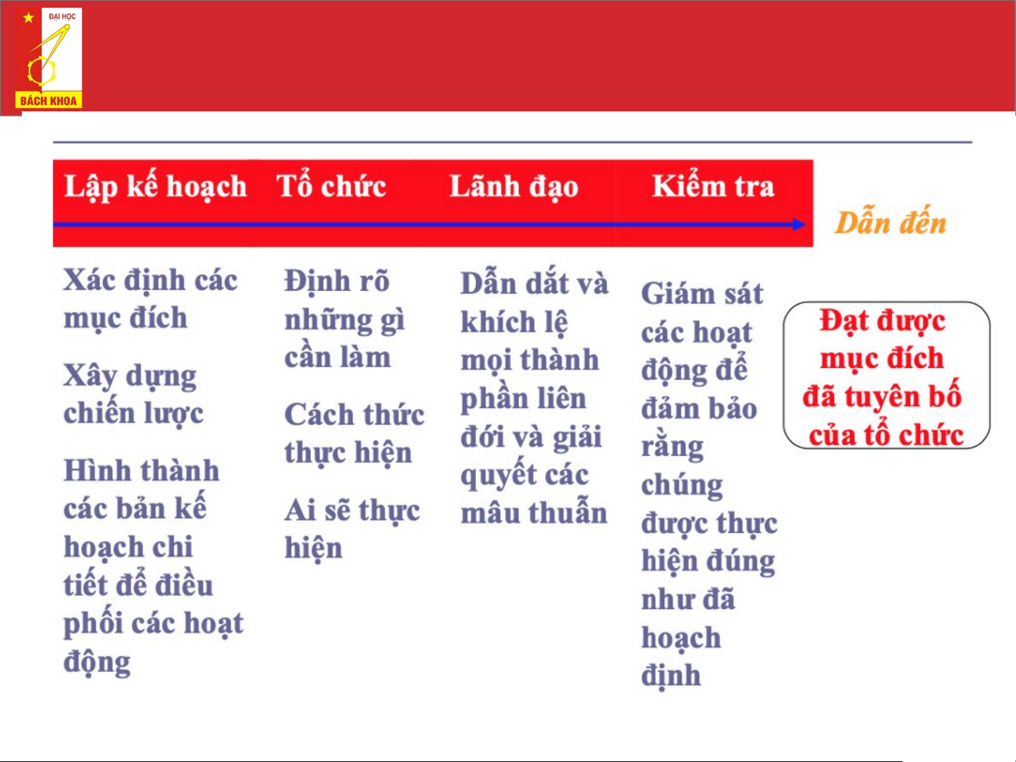 trị để đạt được mục tiêu của nhóm / tổ chức thông qua điều khiển công việc của cấp dưới