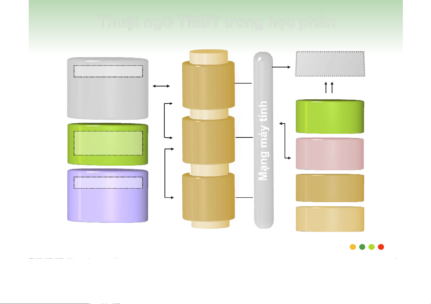 Thuật ngữ TMĐT trong học phần •Mạng internet TMĐT (…) •Mạng nội bộ Phương tiện •B,C,G điện tử •Công ty ƯD TMĐT •Công ty dotcom •Tốc độ kết nối internet Bong bóng Dịch vụ dotcom trực tuyến •Máy chủ Mạng máy tính Sản phẩm số hóa •Băng thông •…. Cộng đồng điện tử •Host