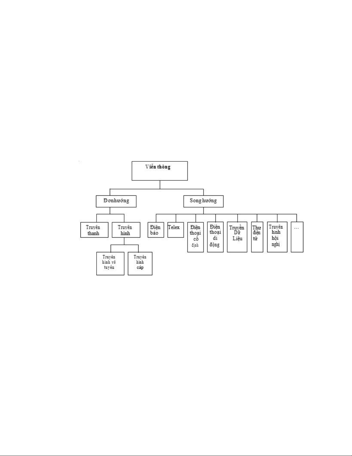 Hình 1.1 là lược đồ phân loại viễn thông. Viễn thông chiếm phần chủ đạo trong