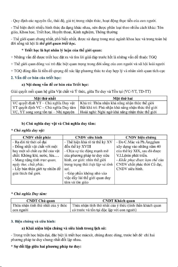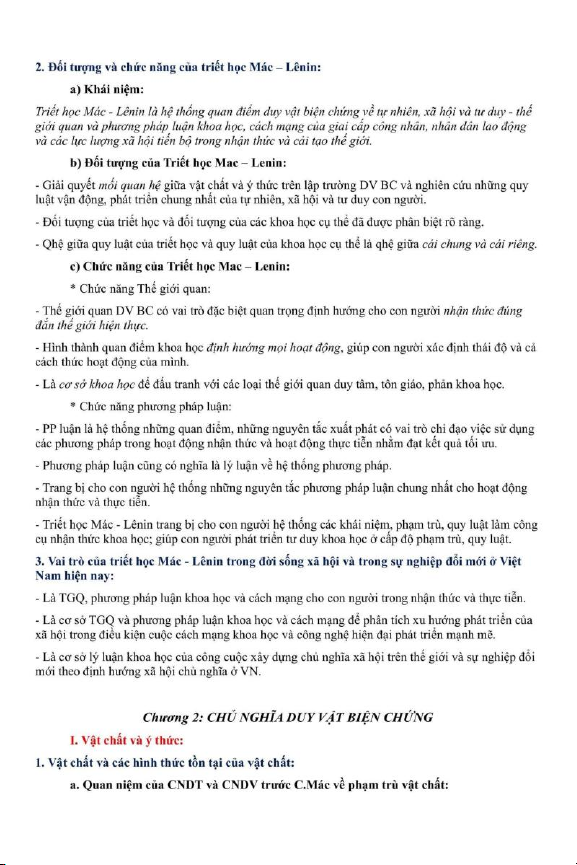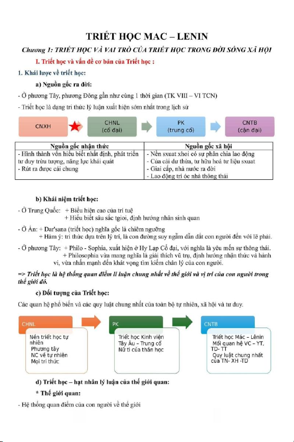Chương 1 Triết Học Mác - Lênin và Vai Trò của Triết Học trong Đời Sống Xã Hội | Môn Triết học Mac-Lenin & Tư tưởng Hồ Chí Minh - Trường Đại học Luật Hà Nội