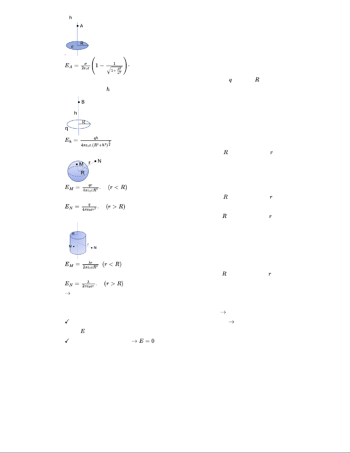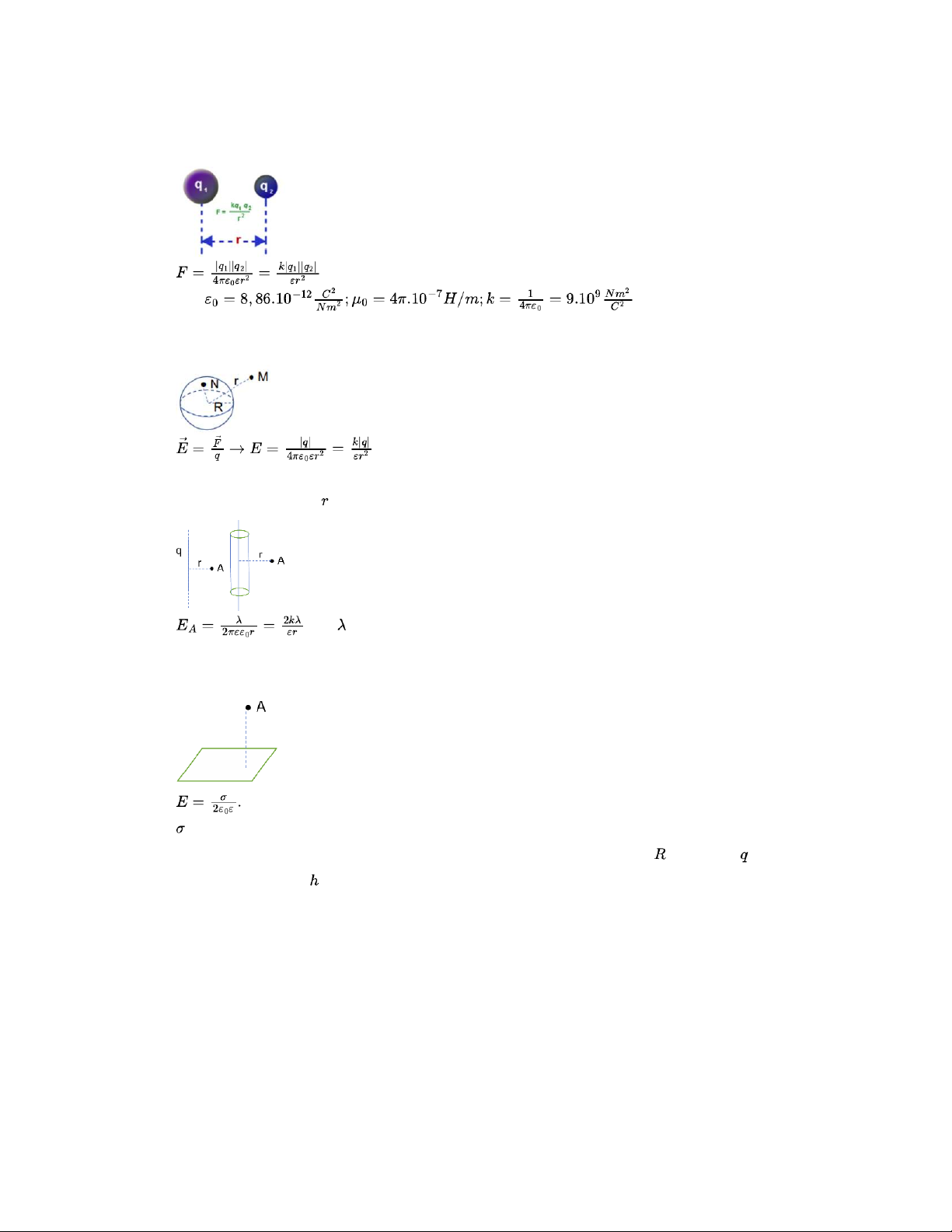 - Cường độ điện trường gây bởi 1 sợi dây thẳng (trụ rỗng) dài vô hạn mang điện đều tại 1 điểm cách dây khoảng :
