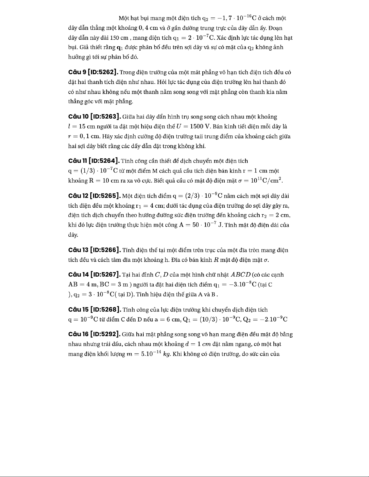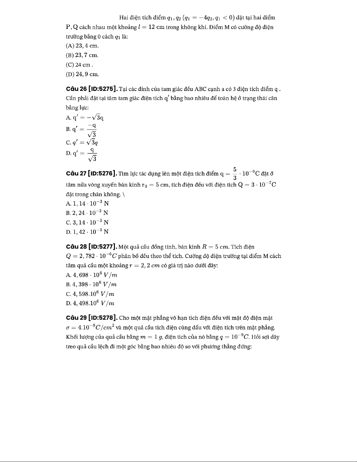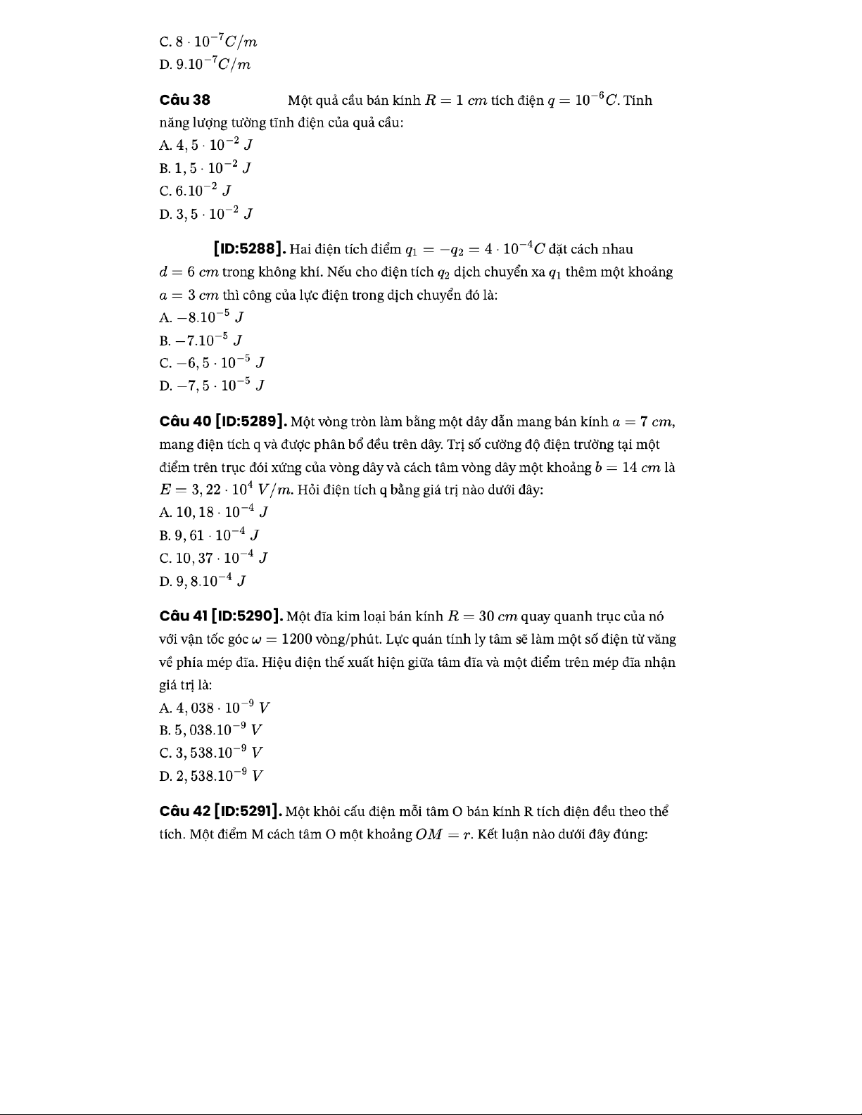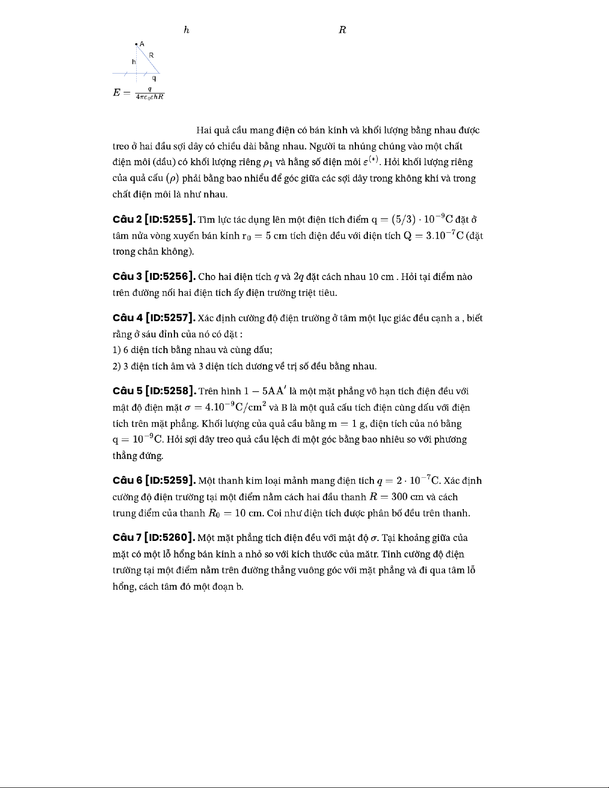 - Cường độ điện trường tại điểm nằm trên trục mặt phẳng đĩa tròn bán kính mang diện cách tâm đĩa khoảng :