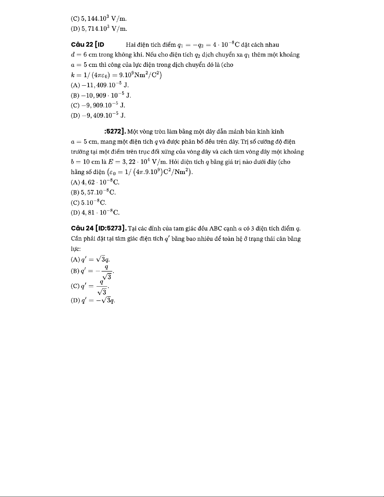 - Cường độ điện trường tại điểm nằm trên trục vòng dây tròn tích điện bán kính , cách tâm vòng khoảng :