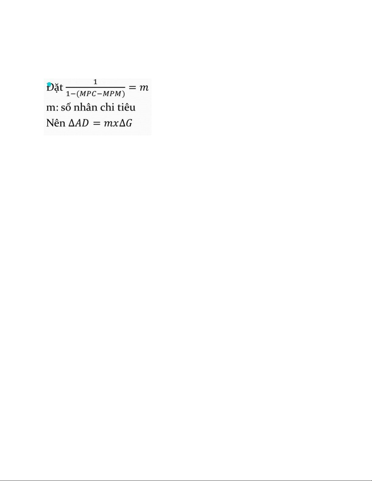 - Hiệu ứng số nhân: Khi G thay đổi 1 đơn vị thì tổng cầu của nền kinh tế sẽ thay đổi nhiều hơn 1 đơn vị G tăng → AD tăng lOMoAR cPSD| 61260386