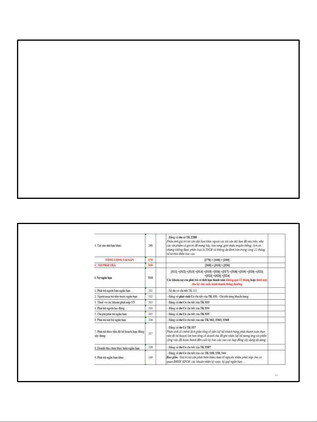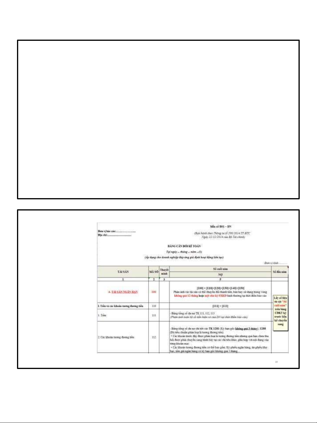 * Đối với DN có chu kỳ kinh doanh bình thường trong vòng 12 tháng, thì Tài sản và Nợ phải trả được