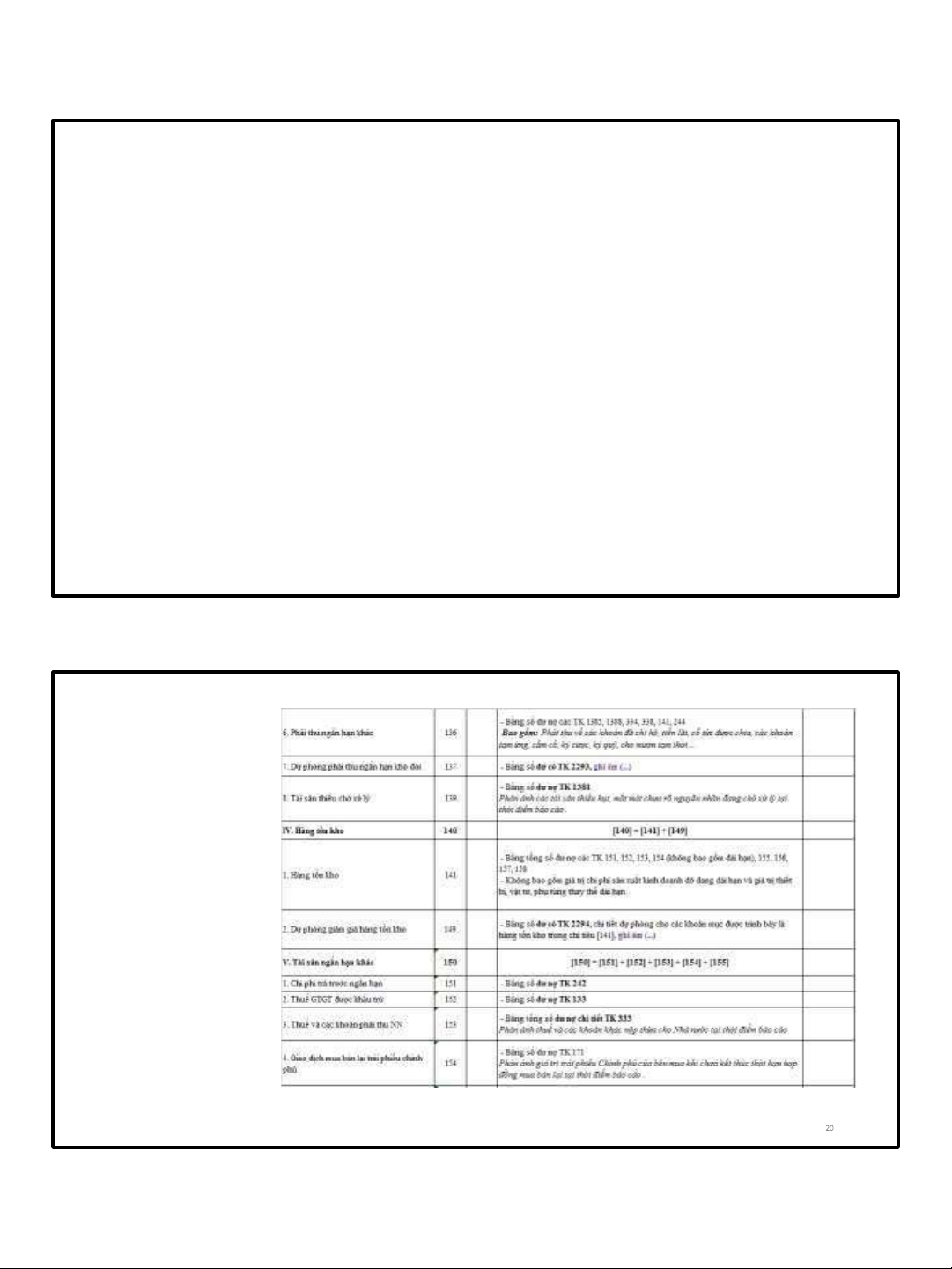 - Tài sản và Nợ phải trả được thu hồi hay thanh toán từ 12 tháng trở lên kể từ thời điểm báo