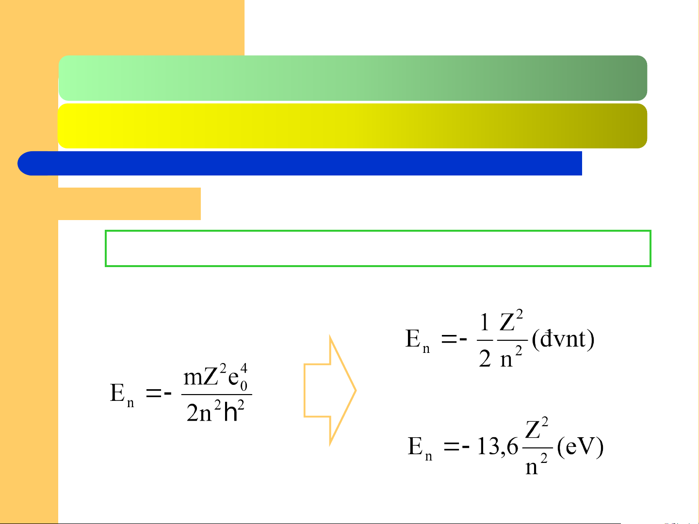 H : Z = 1 → E1 = - 13,6 eV hay E1 = - 0,5 đvnt