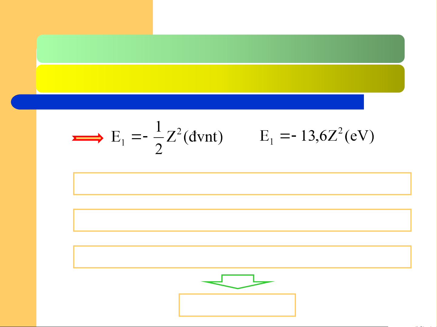 He+ : Z = 2 → E1 = - 54,4 eV hay E1 = - 2 đvnt