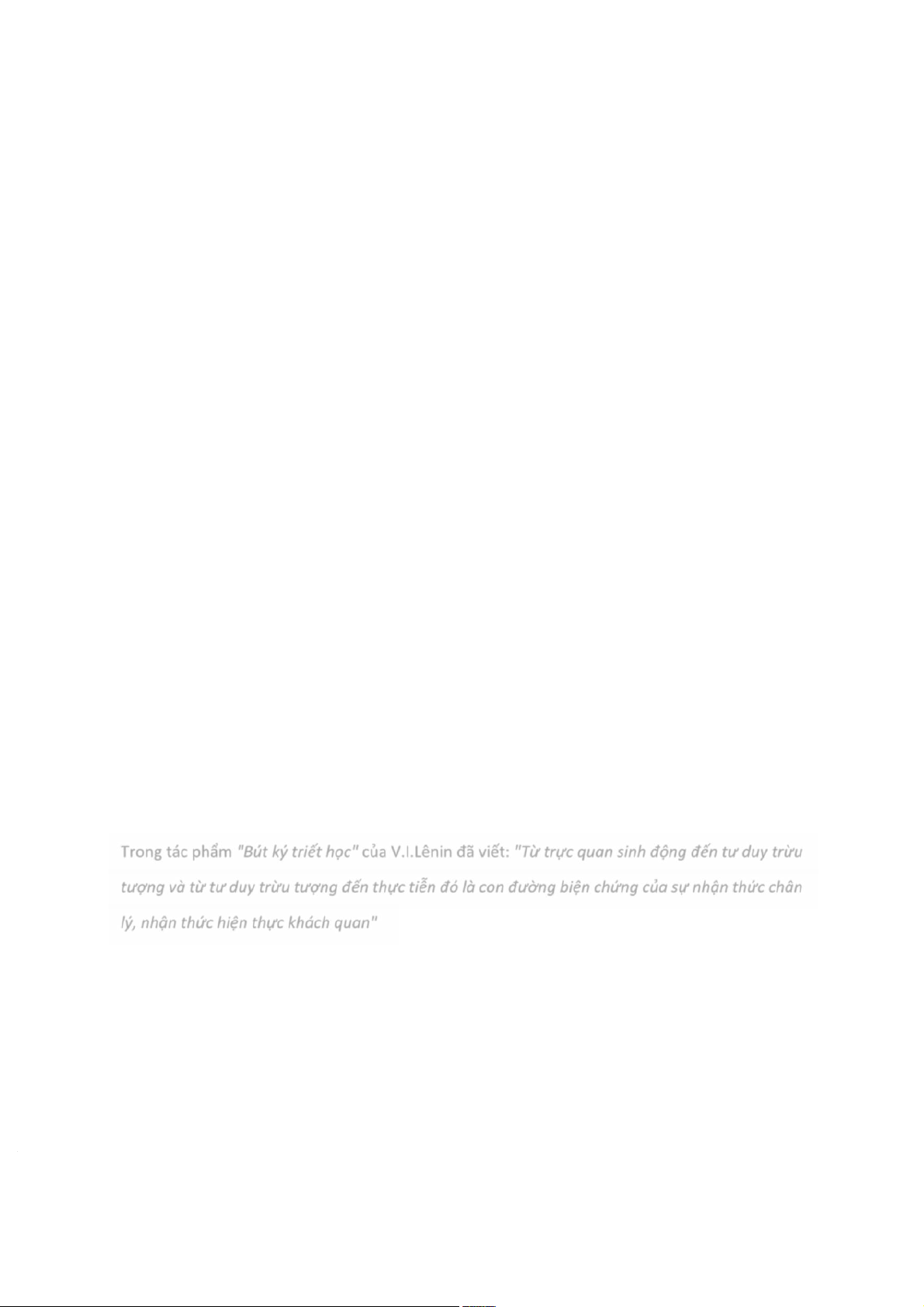 Trong tác phẩm "Bút ký triết học" của V.I.Lênin đã viết: "Từ trực quan sinh động đến tư duy trừu