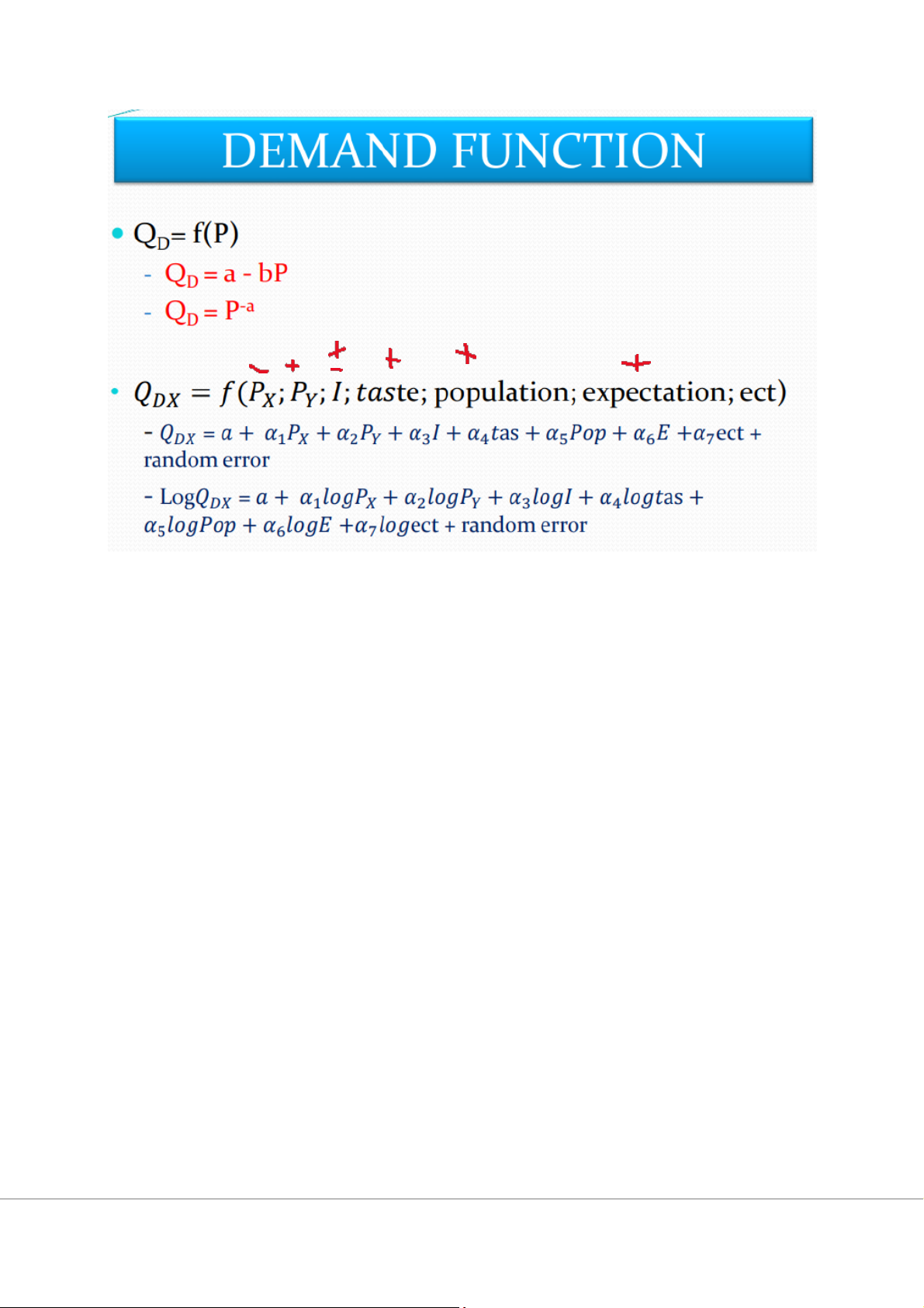 Khác: D: mức giá khác nhau QD: mức giá cụ thể QD = f(P) -> QD= a-b.P
