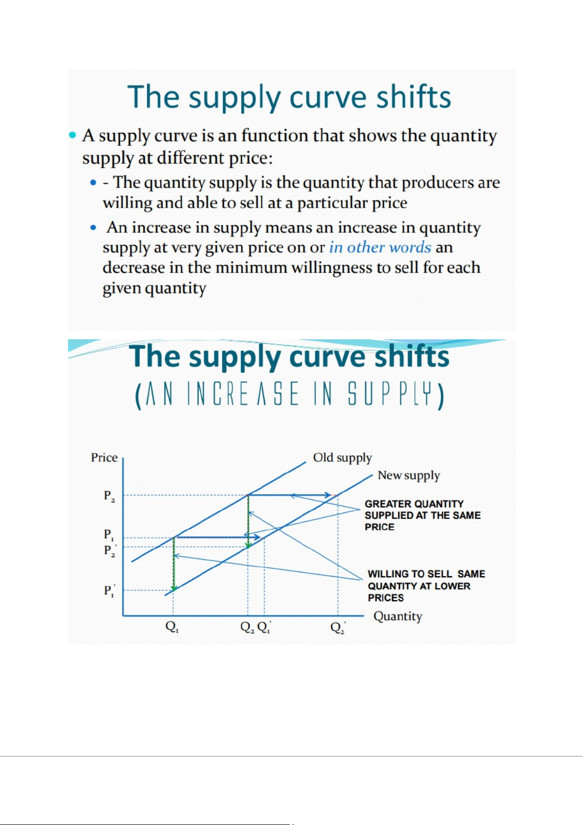 - Công nghệ: giảm chi phí và tăng sản xuất -> sản lượng tăng, giá k đổi hoặc giảm giá.