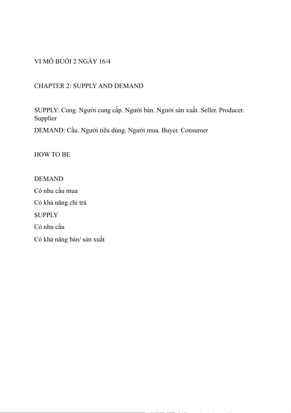 VI MÔ BUỔI 2 NGÀY 16/4 CHAPTER 2: SUPPLY AND DEMAND