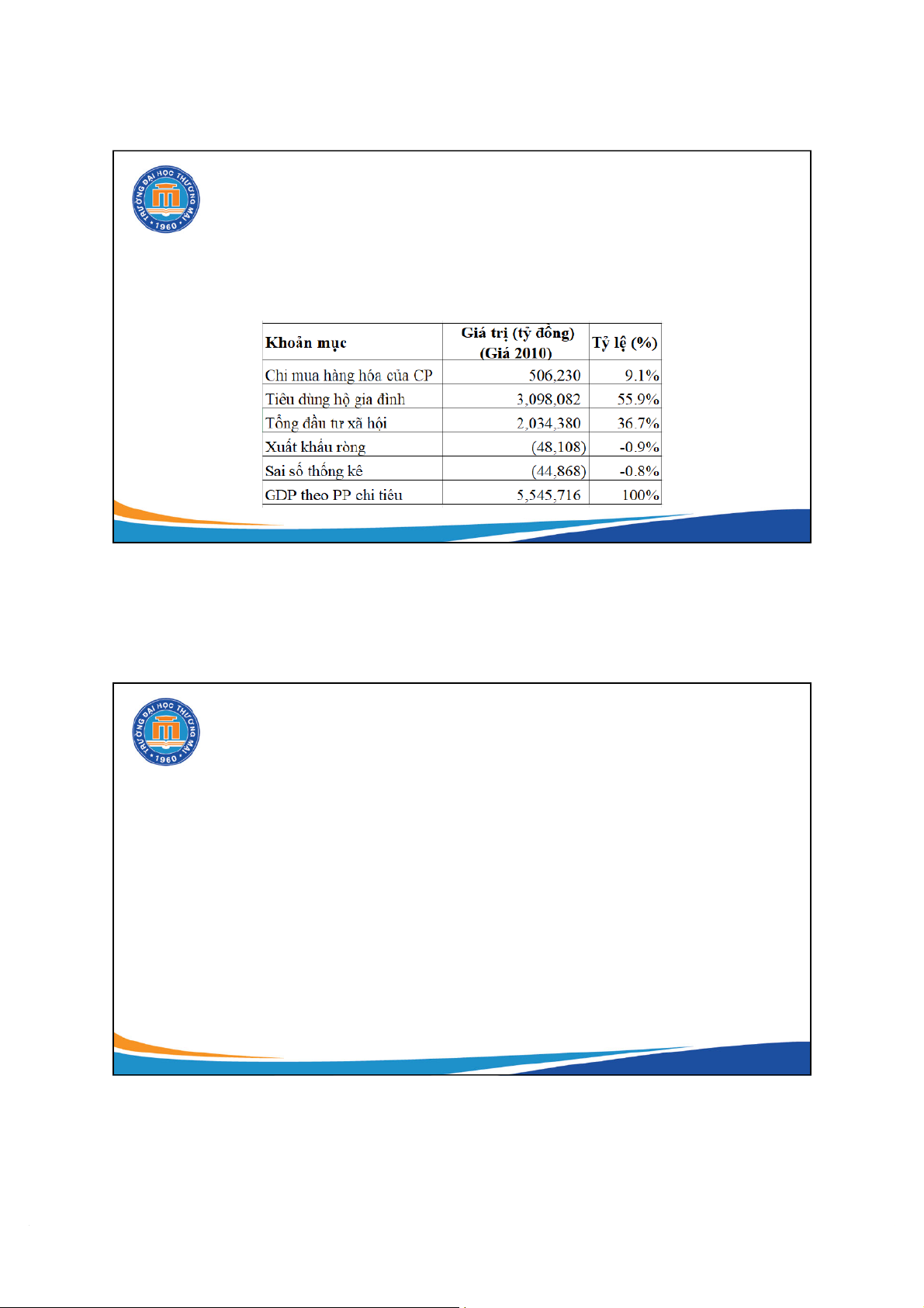 Xác định GDP theo phương pháp chi tiêu GDP = C + I + G + NX