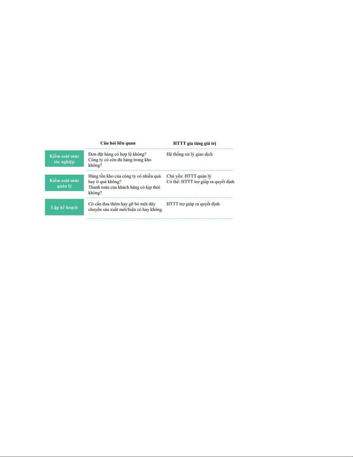 - HTTT kinh doanh và tác nghiệp: quản lý, kiểm soát và kiểm toán các nguồn