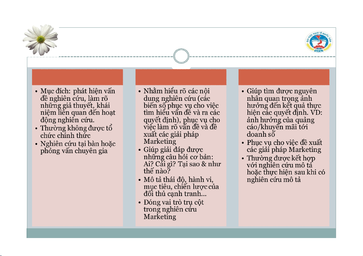 Các loại hình nghiên cứu marketing 24 Nghiên cứu thăm dò Nghiên cứu mô tả