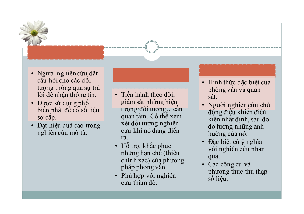 • Đạt hiệu quả cao trong xét đối tượng nghiên đo lường những ảnh nghiên cứu mô tả. cứu khi nó đang diễn hưởng của nó. ra.
