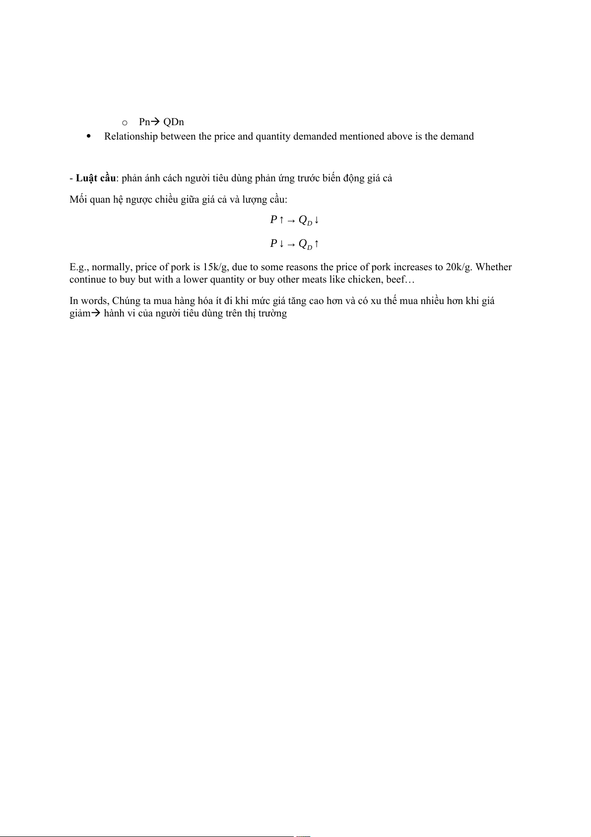 Quantity Demanded (lượng cầu): Số lượng hàng hóa được mua ở các một mức giá nhất định o P1 QD1 o P2 QD2 o … o Pn QDn