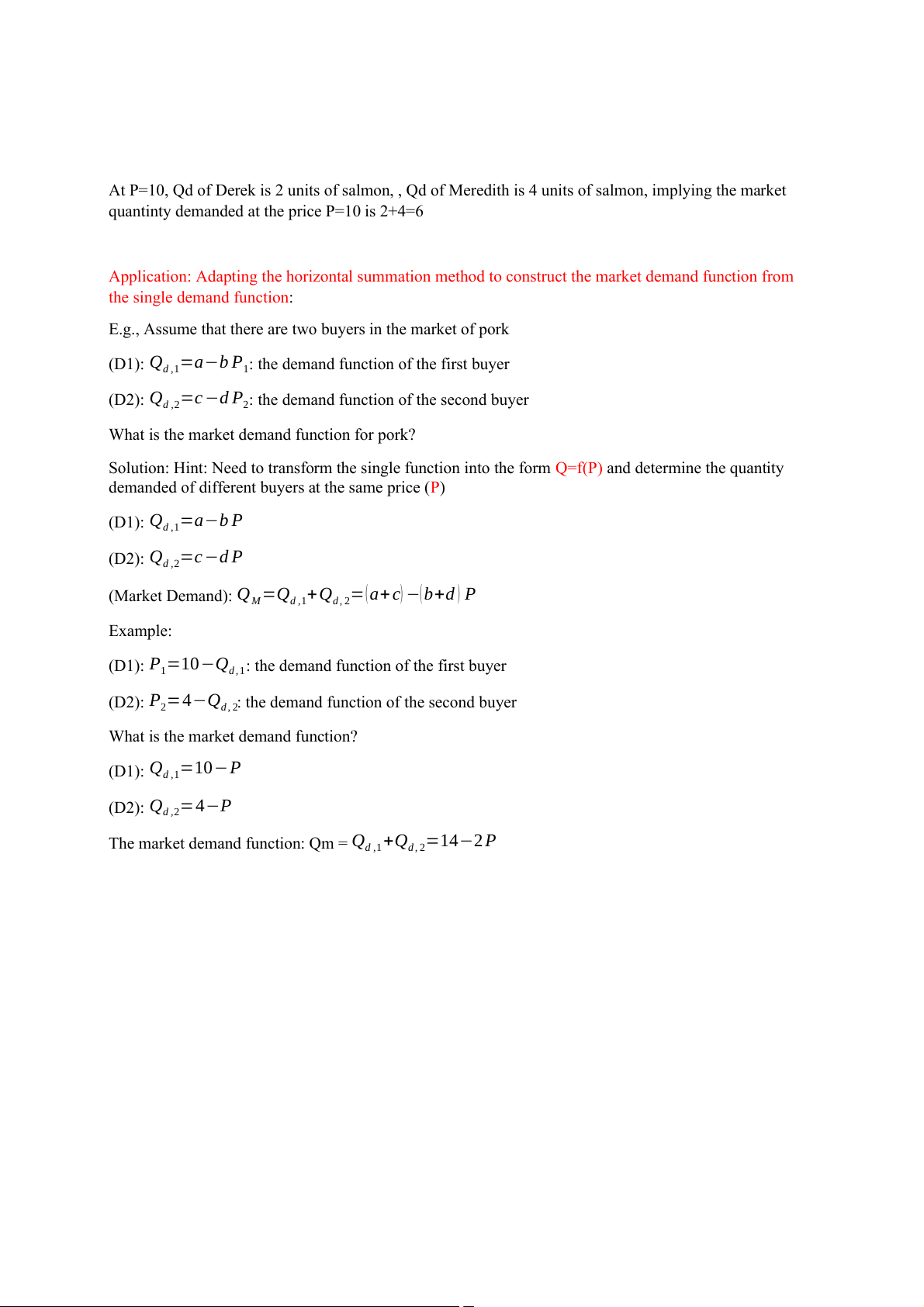 (Market Demand): Q =Q +Q =(a+ c) −(b+d ) P M d ,1 d , 2 Example: