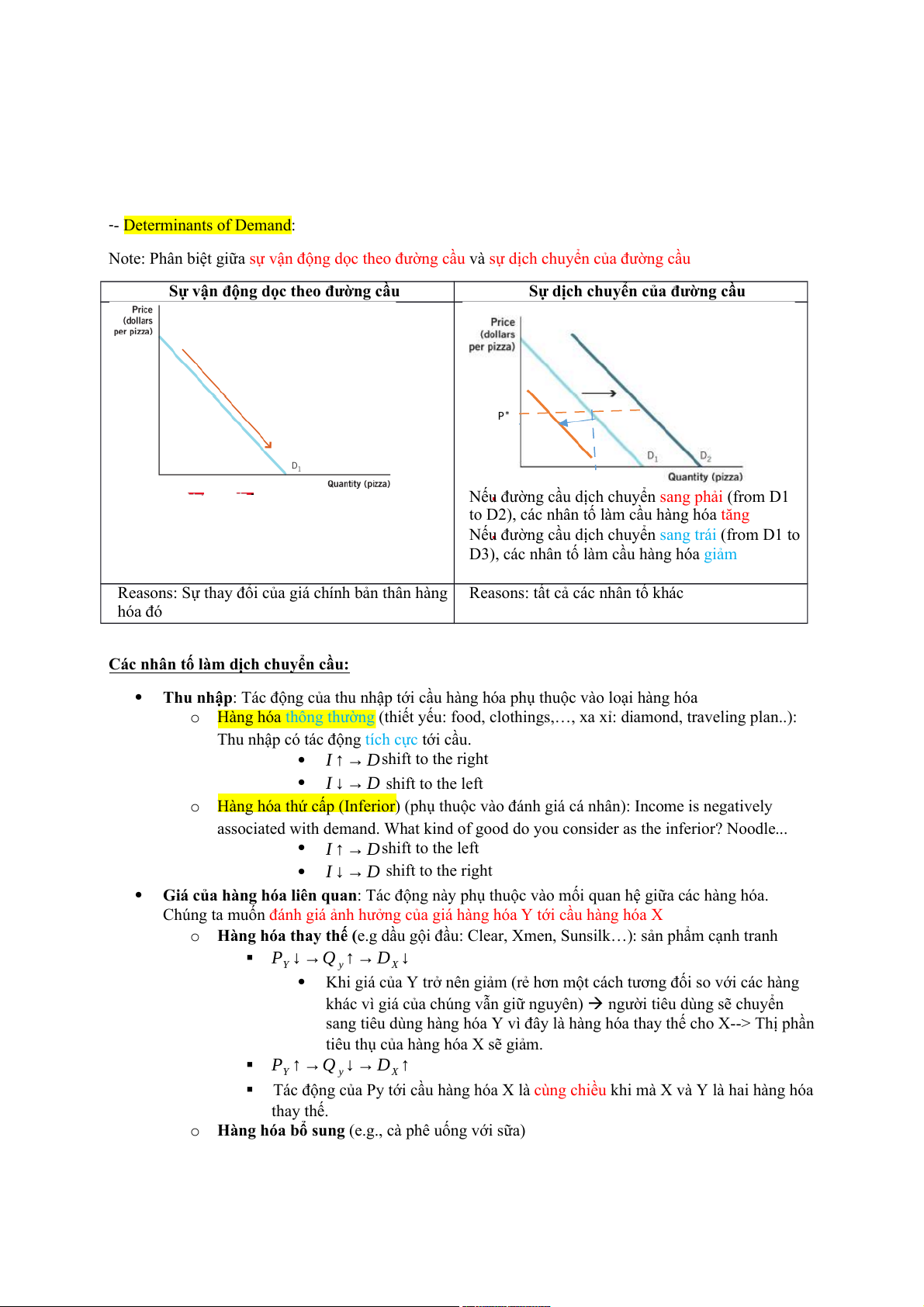 Note: Phân biệt giữa sự vận động dọc theo đường cầu và sự dịch chuyển của đường cầu