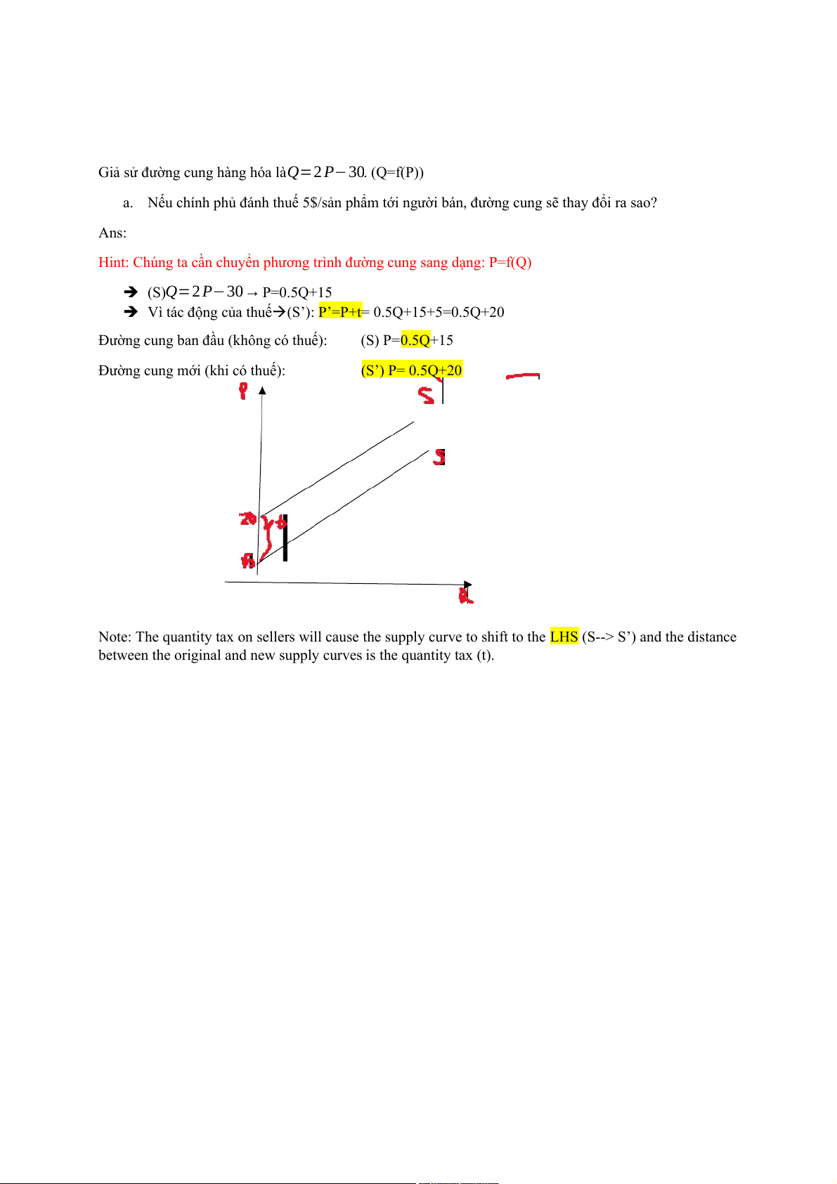 Quantity tax (Thuế sản lượng): chính phủ đánh thuế t cho mỗi đơn vị sản phẩm: