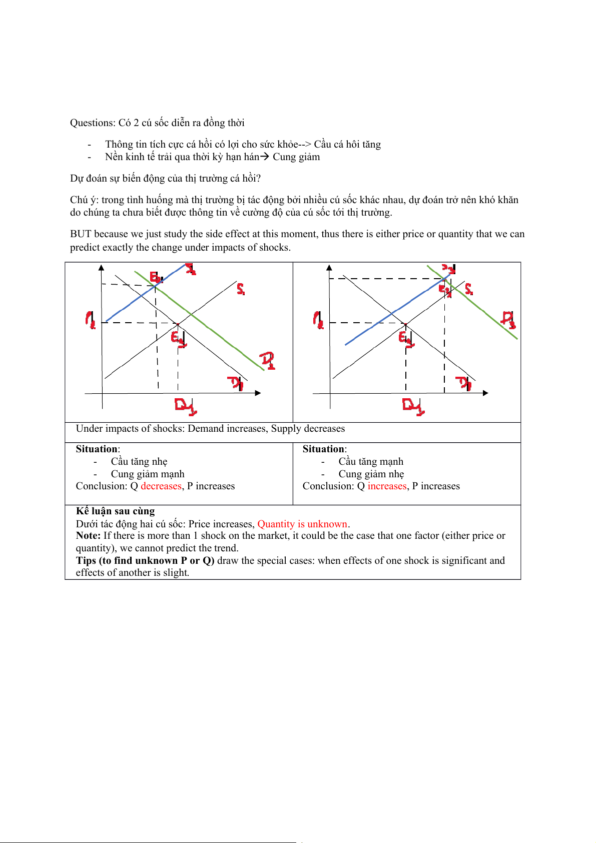 Under impacts of shocks: Demand increases, Supply decreases Situation: Situation: - Cầu tăng nhẹ - Cầu tăng mạnh - Cung giảm mạnh - Cung giảm nhẹ