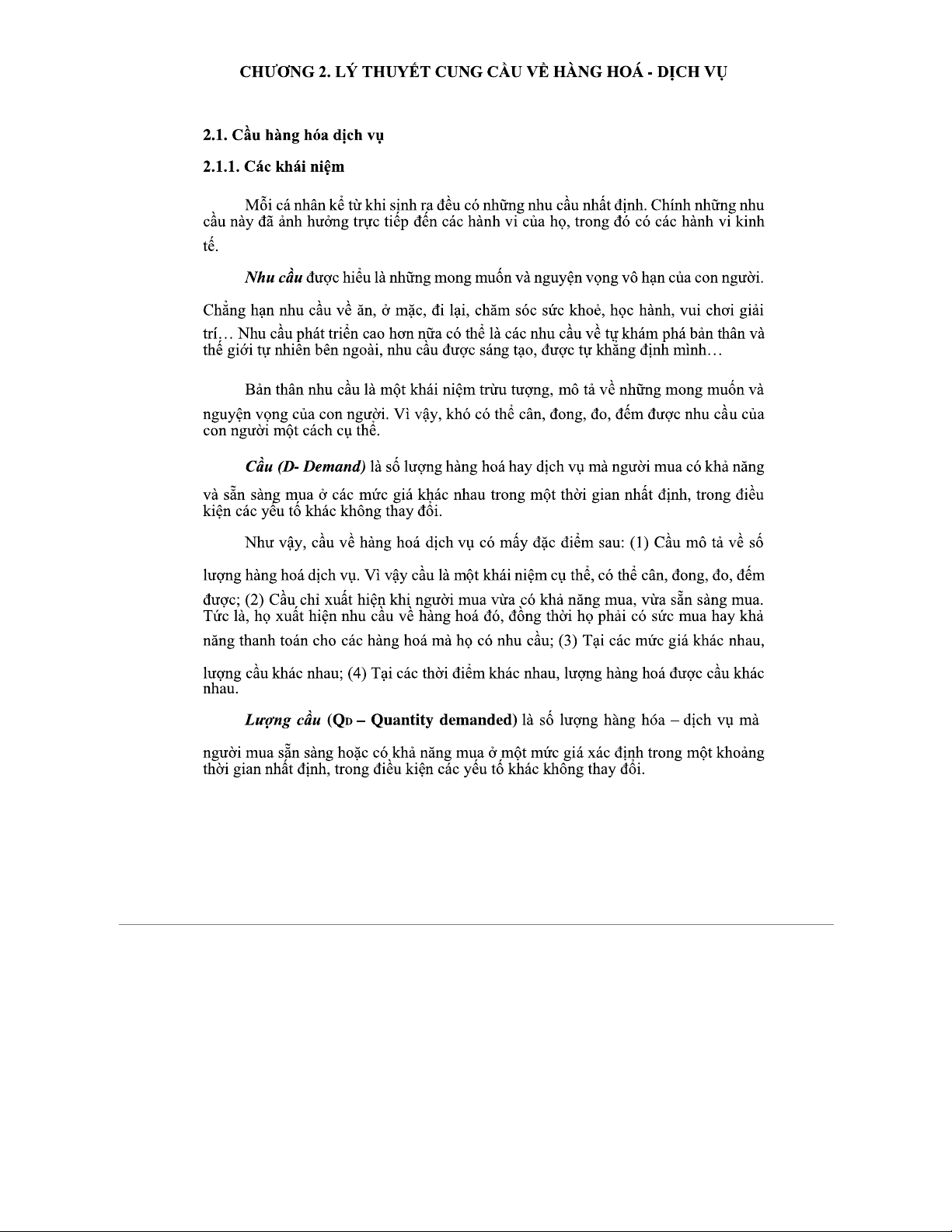 Chương 2 - Lý Thuyết Cung Cầu Về Hàng Hóa - Dịch Vụ Kinh Tế Vi Mô