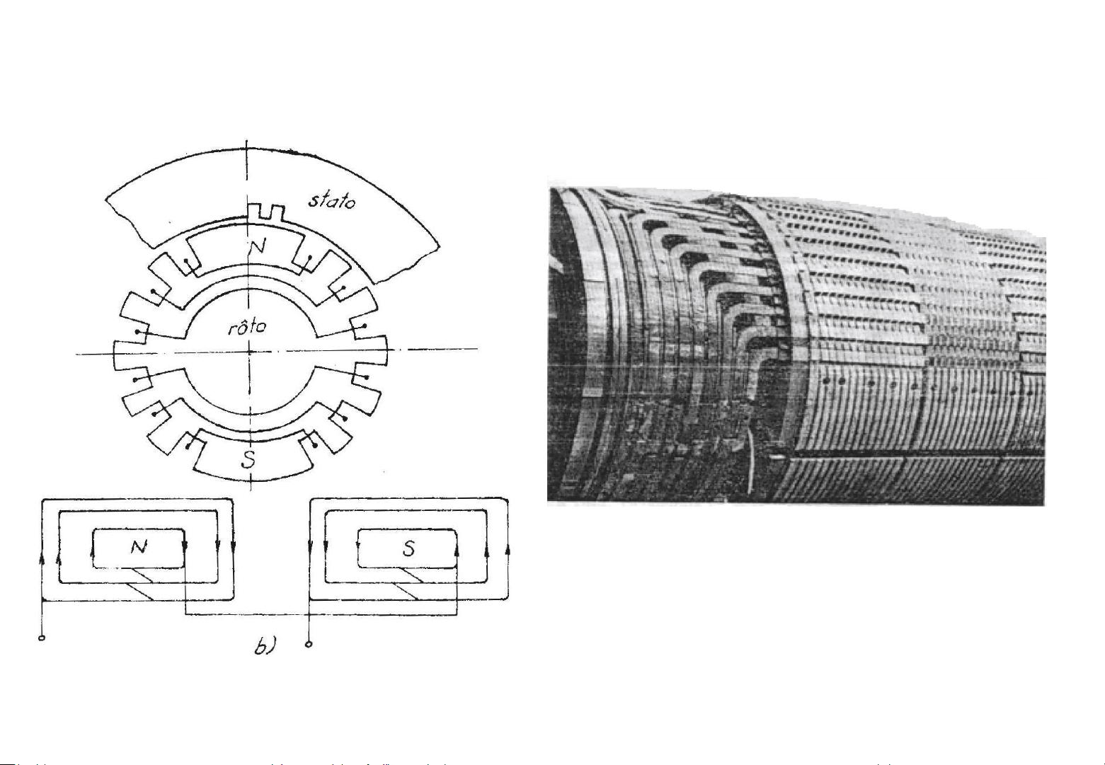 cuộn dây quấn quanh các cực làm nó bị từ hoá tạo nên các cực tự phân bố xen kẽ