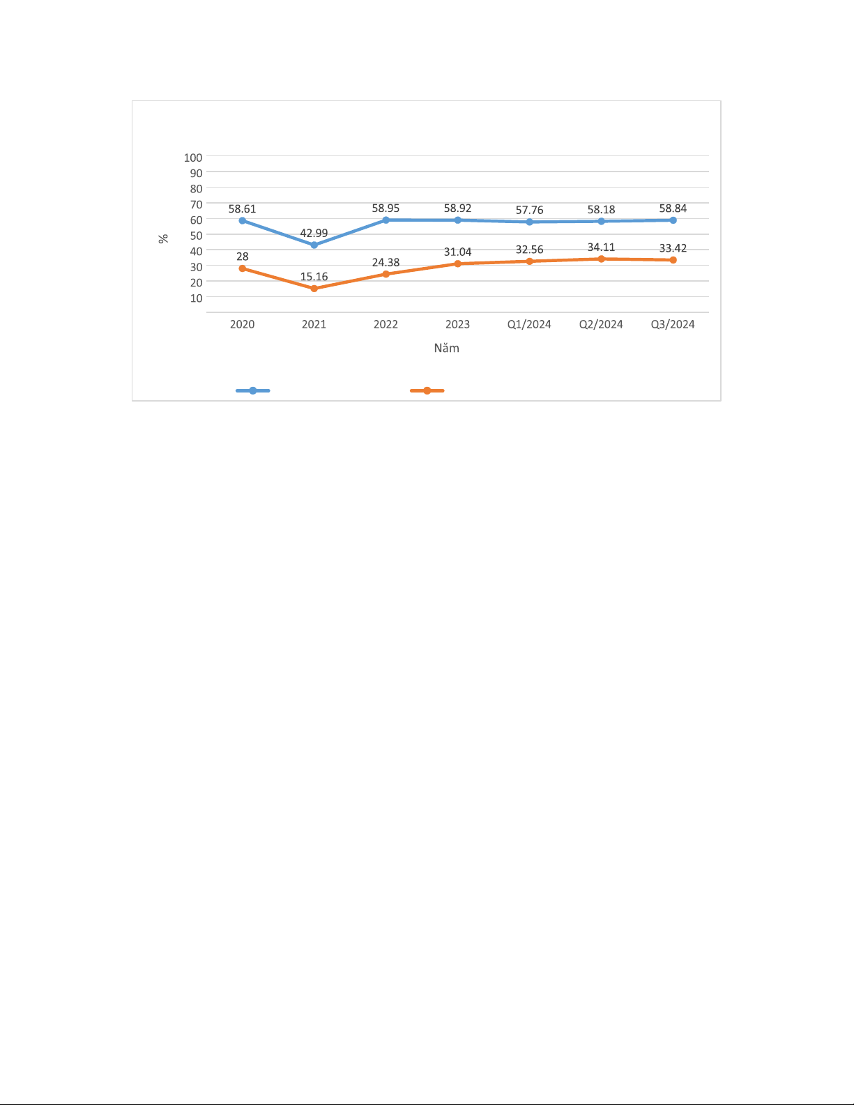 trên vốn chủ sở hữu (ROE) (%): 2020: 35,56 2021: 35,21 2022: 20,6 2023: 20,15 Q1/2024: 12,39 Q2/2024: 12,35 Q3/2024: 10,32