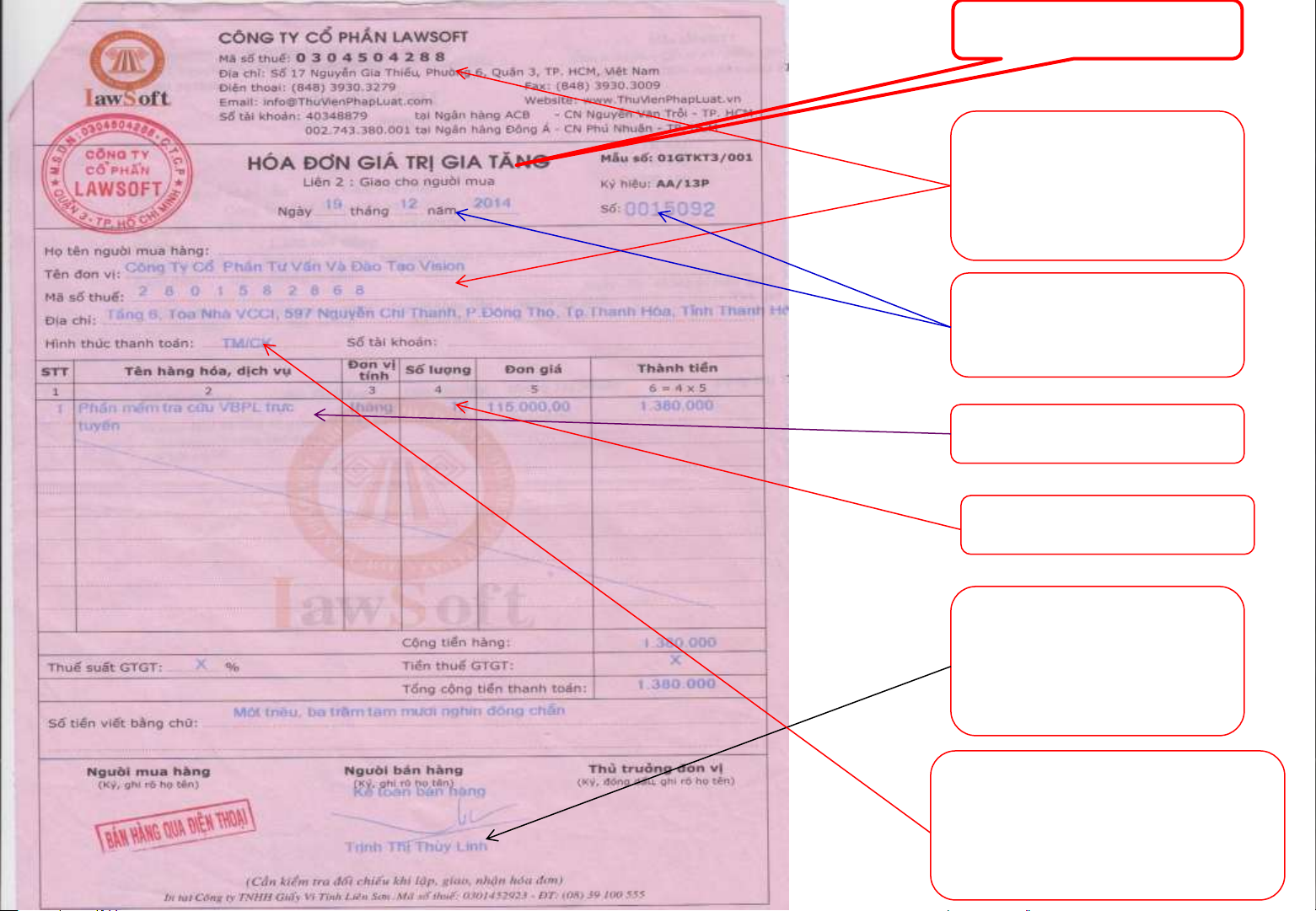 2.2.1. Bản chứng từ * Yếu tố bổ sung - Phương thức thanh toán - Thời gian thanh toán - Định khoản…
