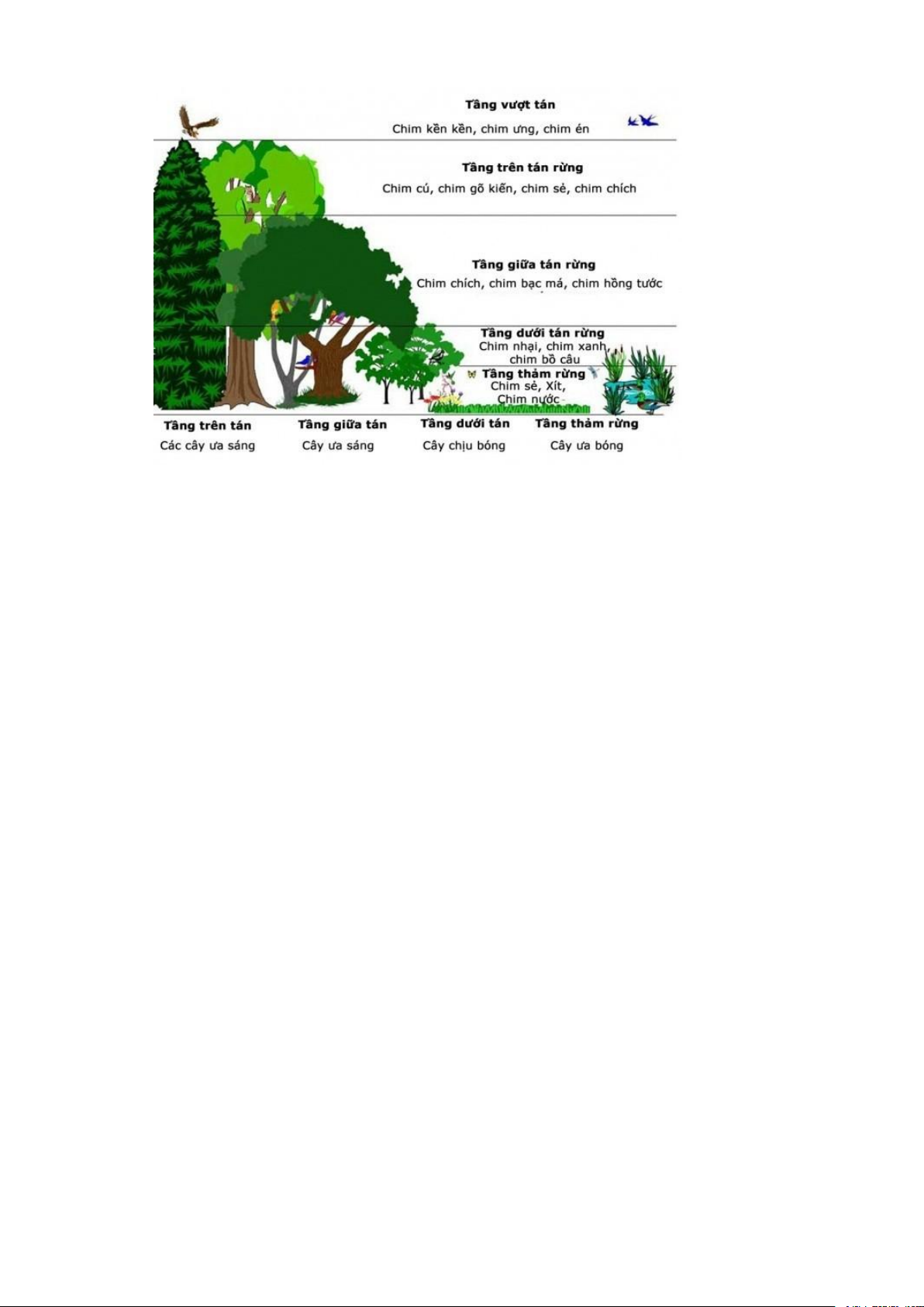 của thực vật kéo theo sự phân tầng của các loài động vật sống trong rừng: nhiều loài