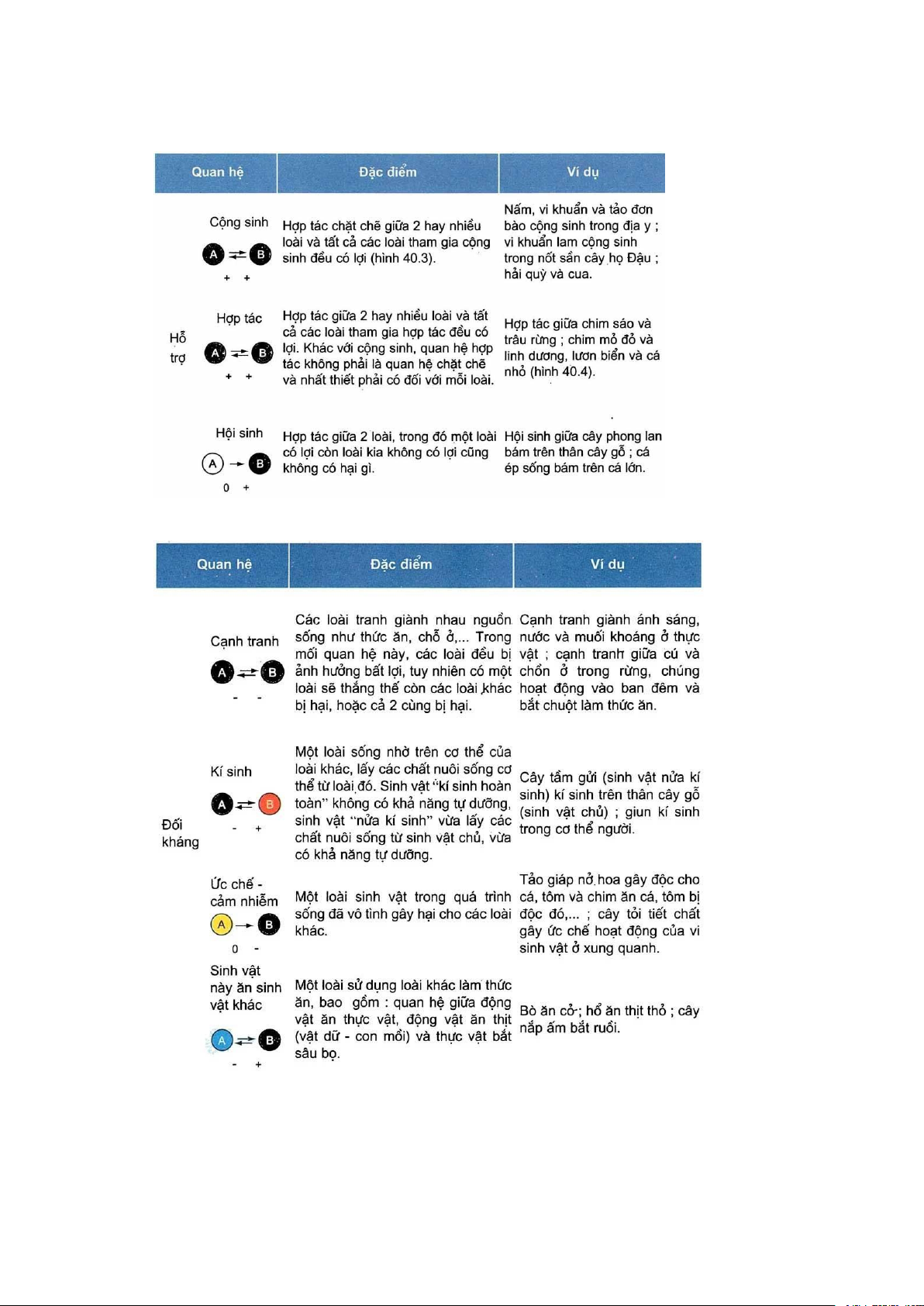 - Bảng 40. Quan hệ giữa các loài trong quần xã