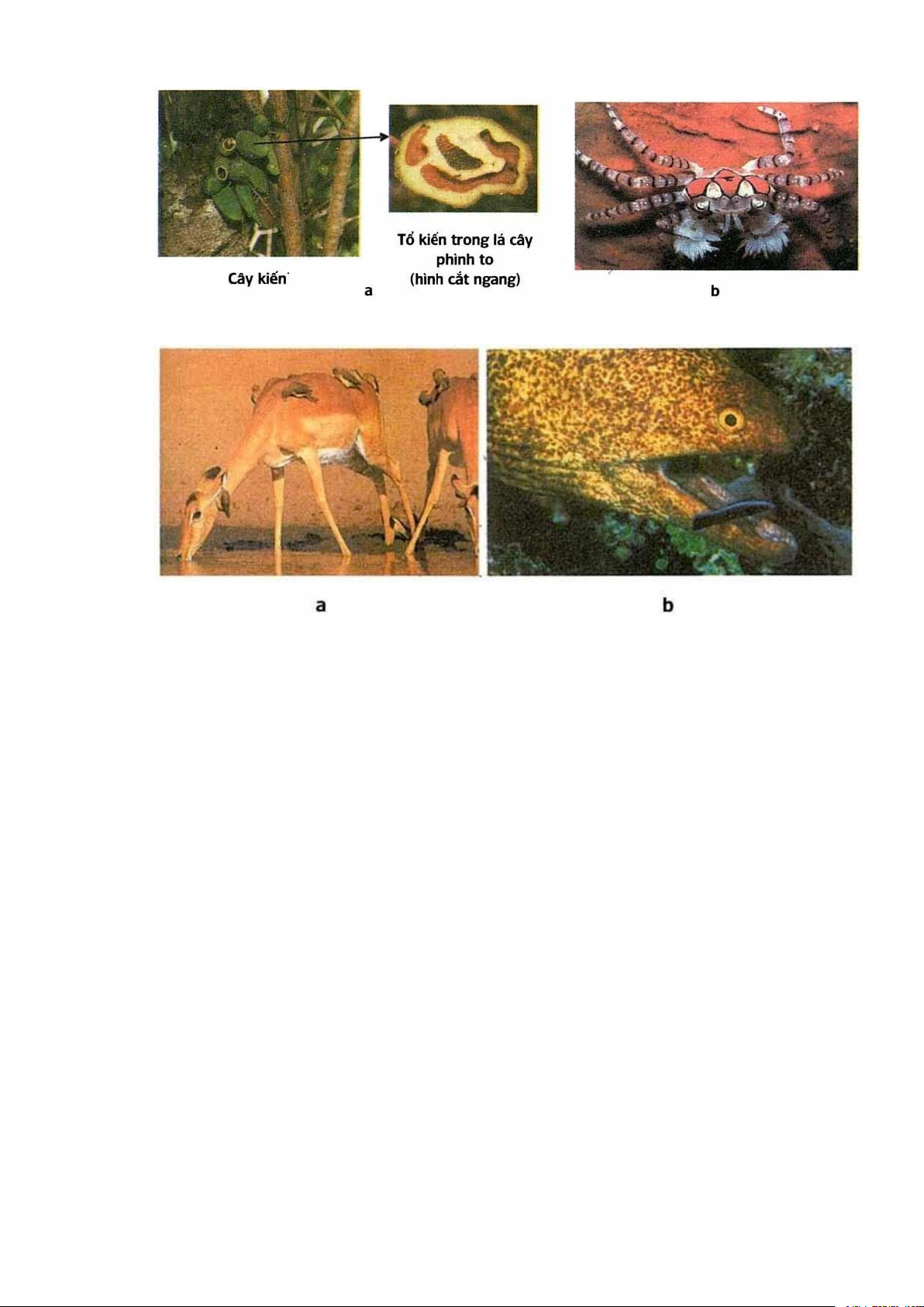 Hình 40.3. a) Cộng sinh giữa kiến và cây kiến; b) Cộng sinh giữa hải quỳ và cua