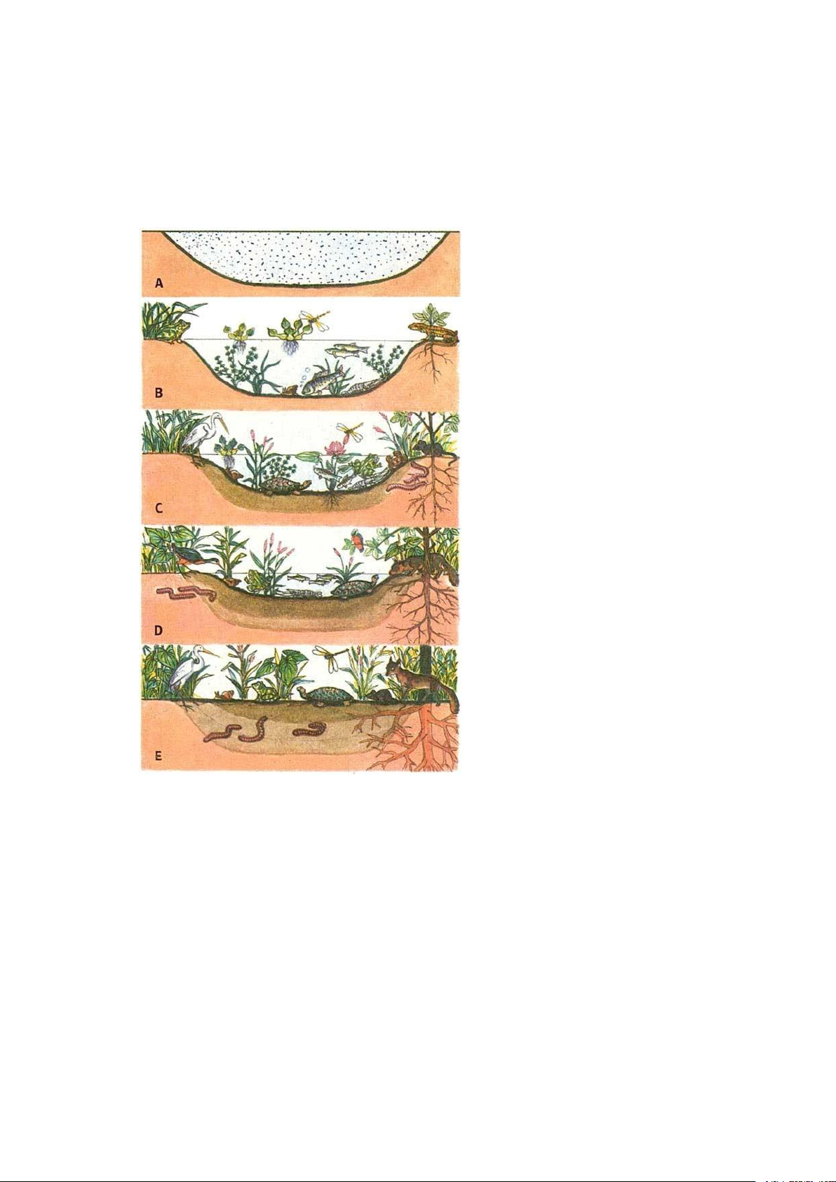 D: Đầm nước nông biến đổi thành vùng đất trũng. Cỏ và cây bụi dần dần đến sống trong đầm.