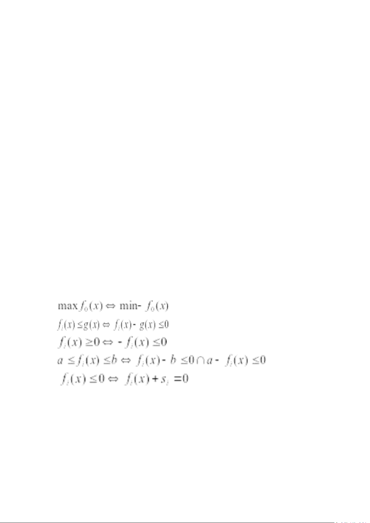 giá trị của x thoả mãn các điều kiện ràng buộc. - Trong đó: Kí hiệu Giải thích x∈ Rn Biến tối ưu f 0( x) Hàm mục tiêu n