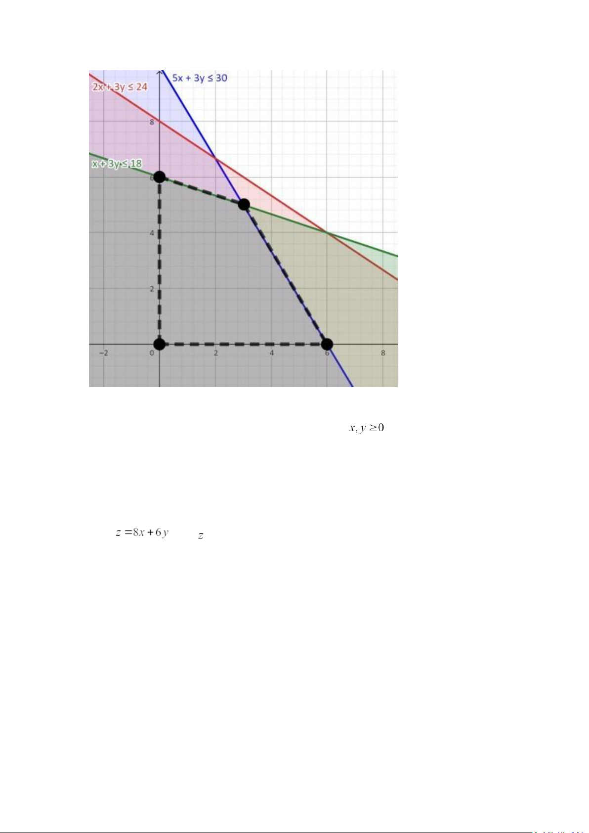 buộc). Giao của 3 phần tô màu và giới hạn x , y ≥ 0 tại trục tọa độ sẽ tạo nên