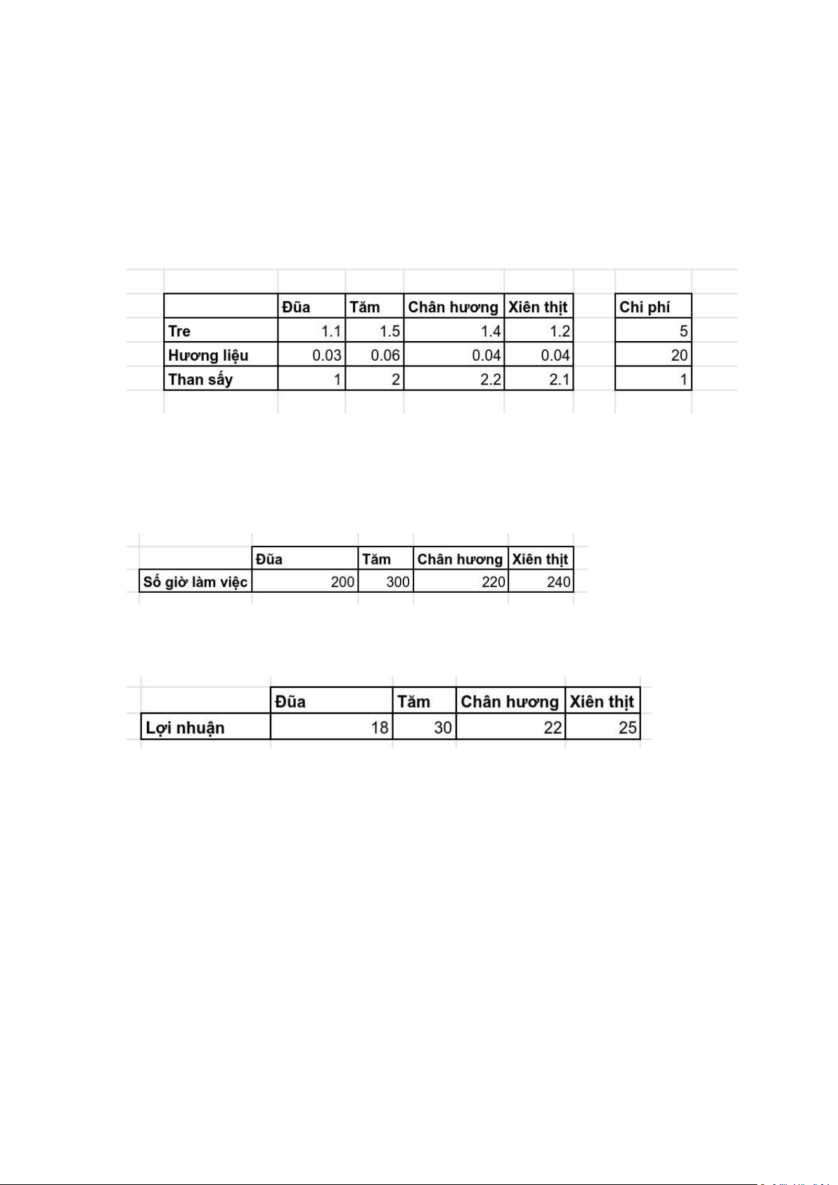 0.2 tấn hương liệu và 10 tấn than sấy. Hỏi nhà máy cần lập kết hoạch sản
