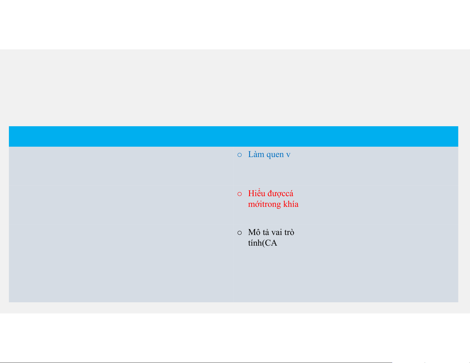 o Nhận ra tầm quan trọng của sự đổi mới,cảitiếntrong việc o Mô tả vai trò của các dụngcụ kỹ thuậtcósựhỗ trợ máy