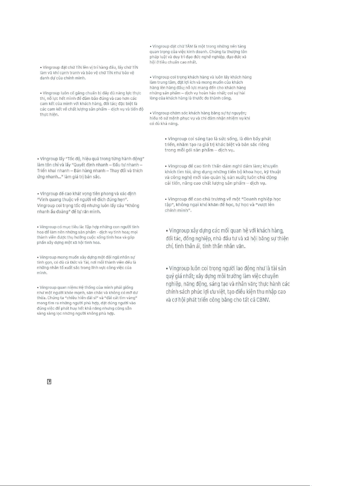 Triết lý kinh doanh, giá trị cốt lõi của Vingroup bao gồm: