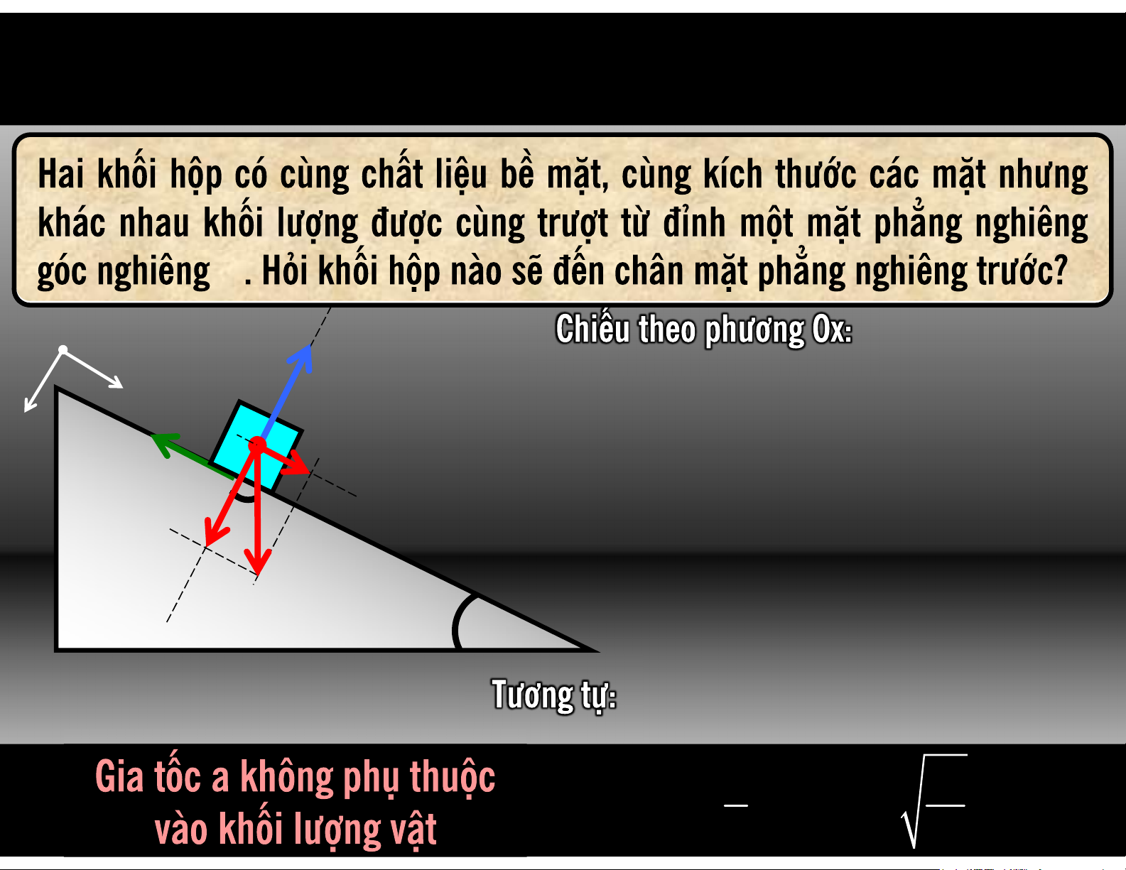 m g.sinα - km g.cosα = m a P 1 1 1 1 1y P1 α a = g.sinα - k.g.cosα 1 a = g.sinα - k.g.cosα 2 1 2s 2 s = at t = 2 a MỞ M R ỘN Ộ G G B ÀI À T O T Á O N Fma sát trượt = k.N A a = g.sinα - k.g.cosα α = 0 a = -kg B C m