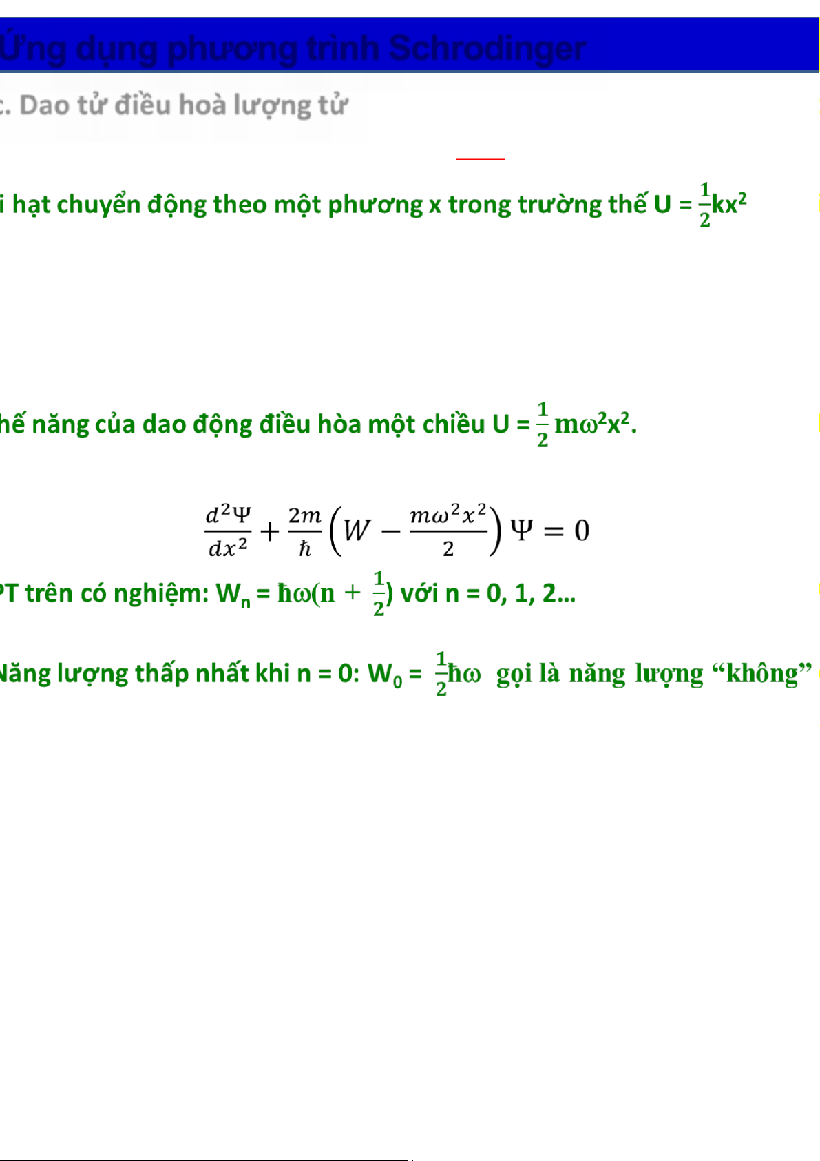c. Dao tử điều hoà lượng tử ! 2m !! ² Khái niệm Dy (r + ) y= W éù -U(r) (r)0 2 ëû " ² Ví dụ: