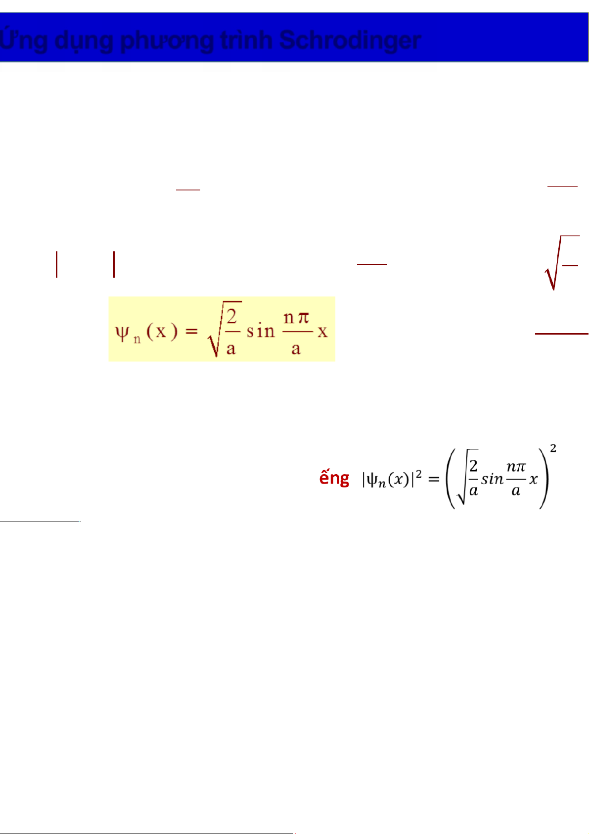 E Mỗi trạng thái của hạt ứng với một hàm sóng yn(x)