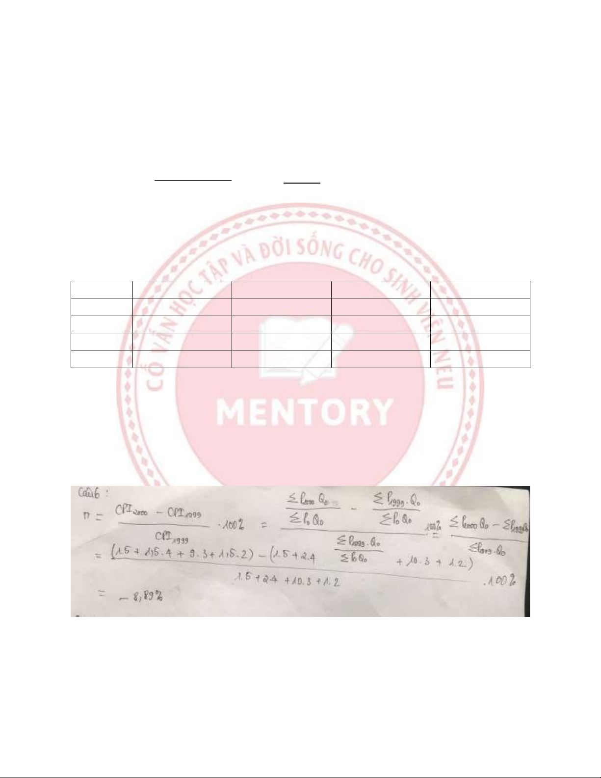 Câu 6. Tỷ lệ lạm phát đo lường bằng CPI trong giai đoạn 1999 và 2000 là a. -8,89% b. -7,14% c. 3,75%