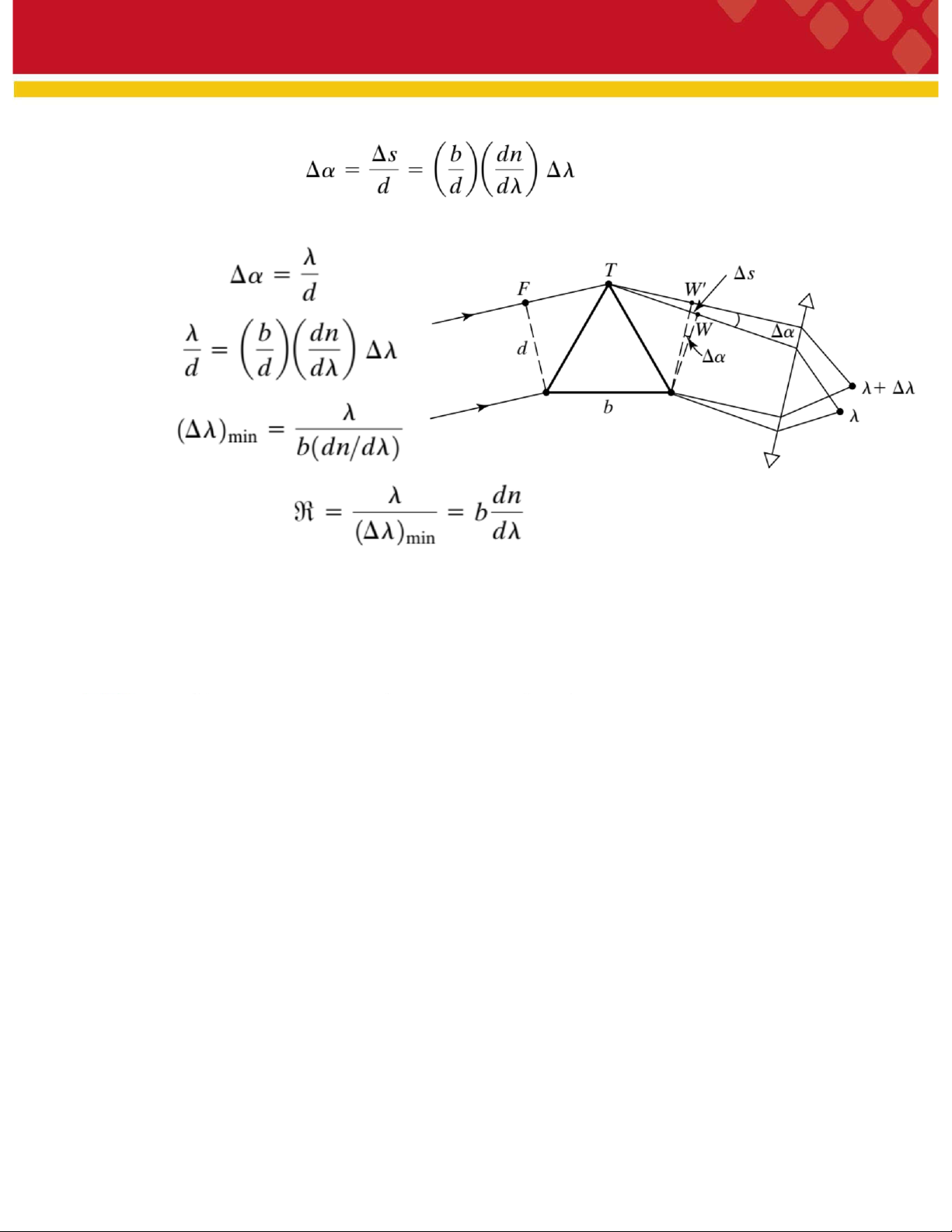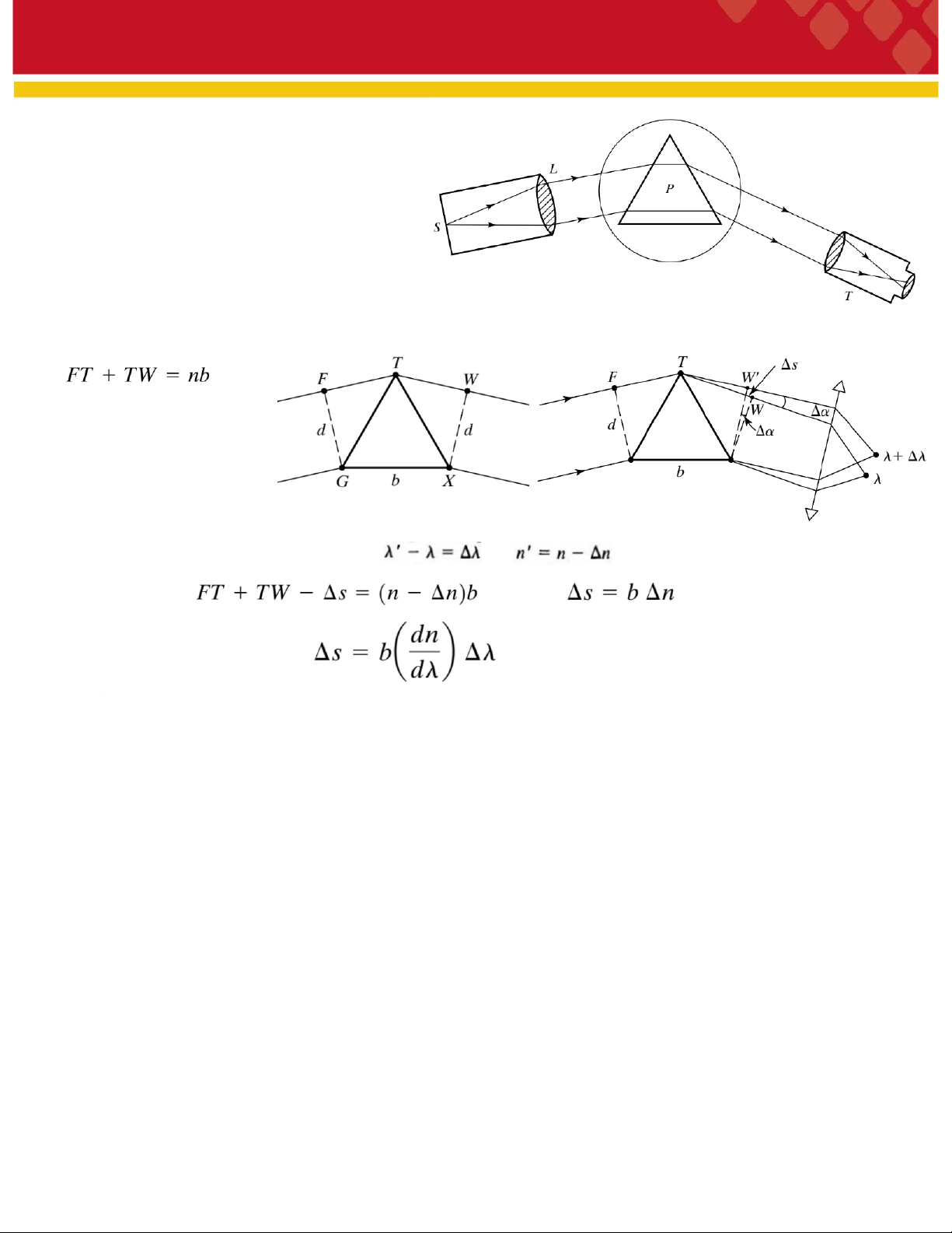 Ở đây, b là độ dài đáy lăng kính và n là chiết suất ứng với bước sóng λ. Giả sử n’ và λ’ là