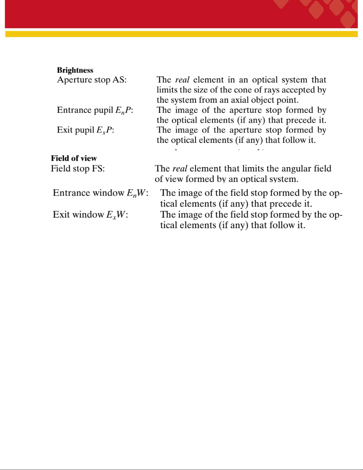 Fied stop: Phần tử vật lý giới hạn trường nhìn được hình thành bởi một hệ thống quang học.