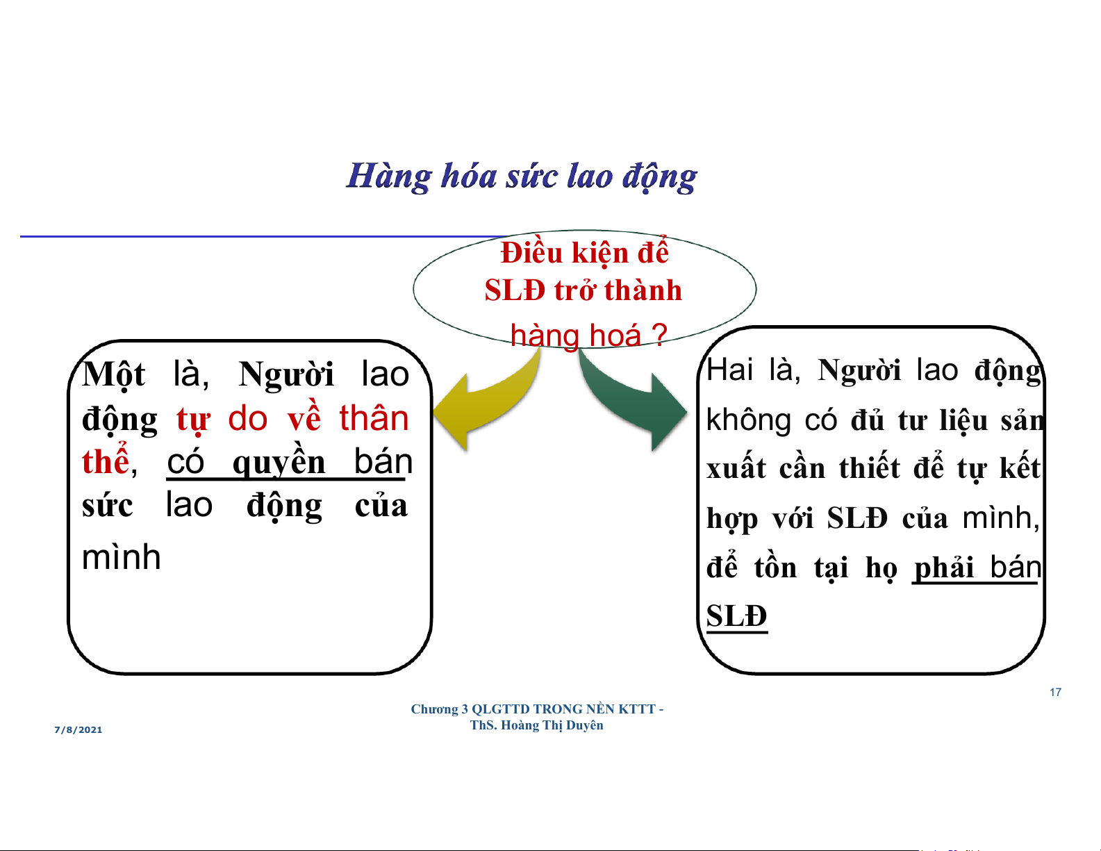 ThS. Hoàng Thị Duyên 7/8/2021 Điều kiện để SLĐ trở thành hàng hoá ?