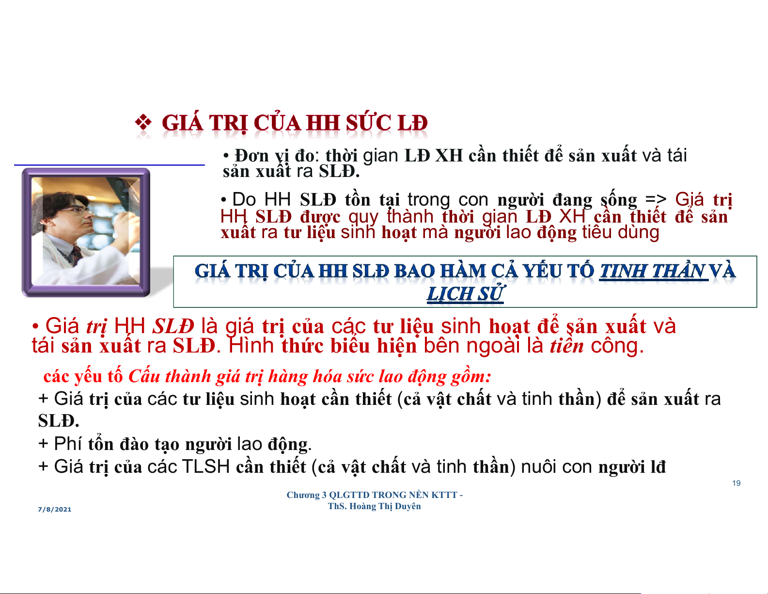 các yếu tố Cấu thành giá trị hàng hóa sức lao động gồm: